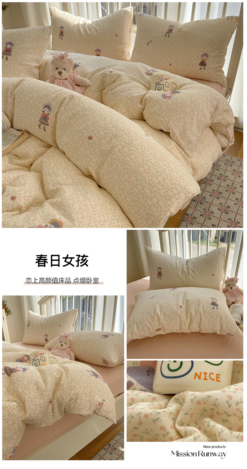 当前位置: 91家纺网 > 商品网购 > 床品套件 > 四件套 > 双层纱四件套 > XIWEN-希文家纺 2025新款A类全棉纯棉有氧双层纱四件套 春日女孩
