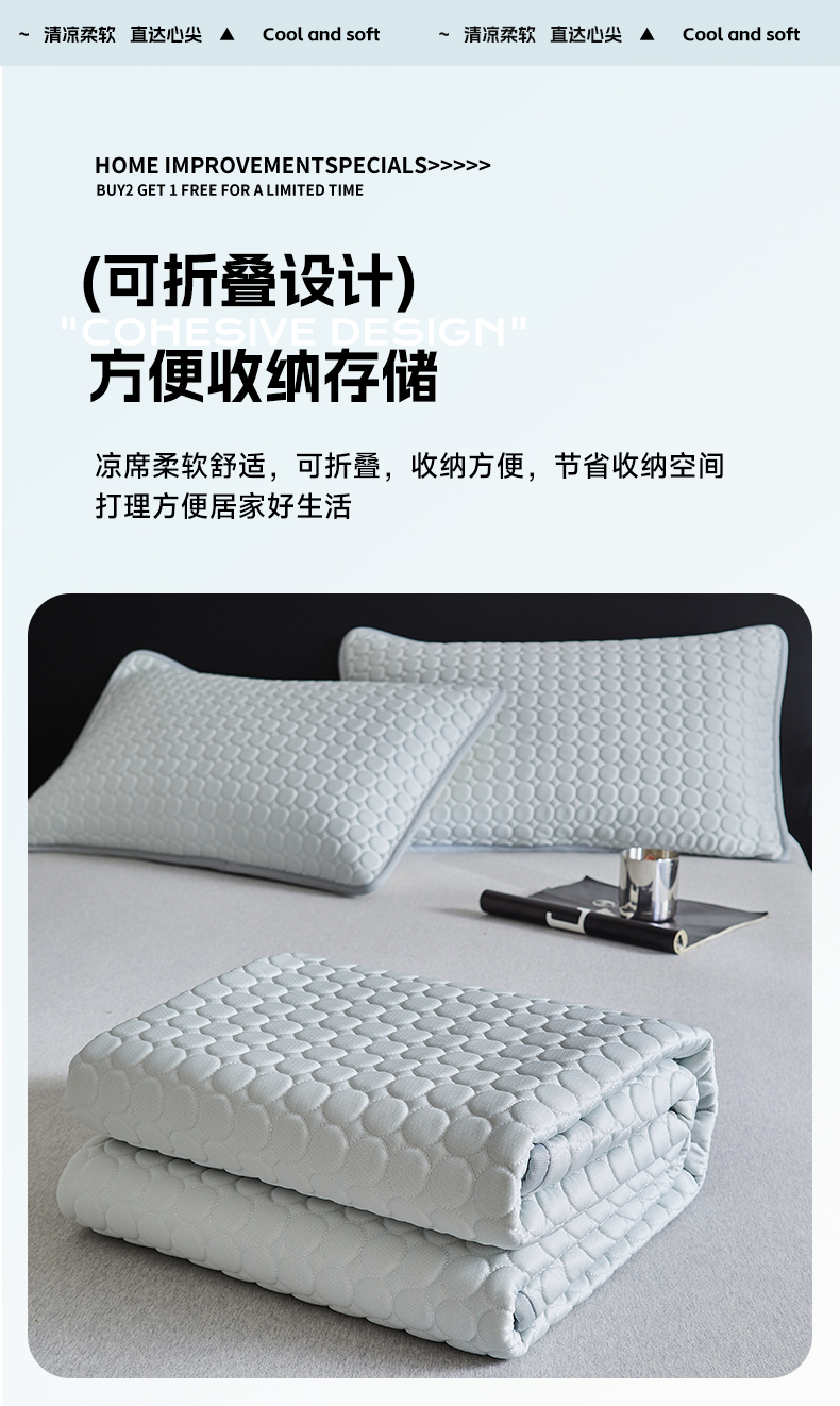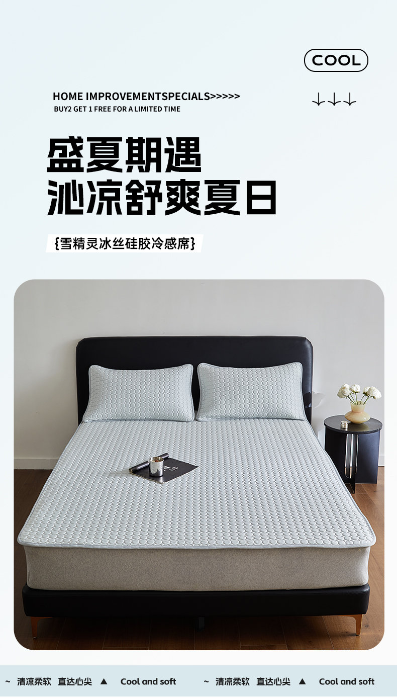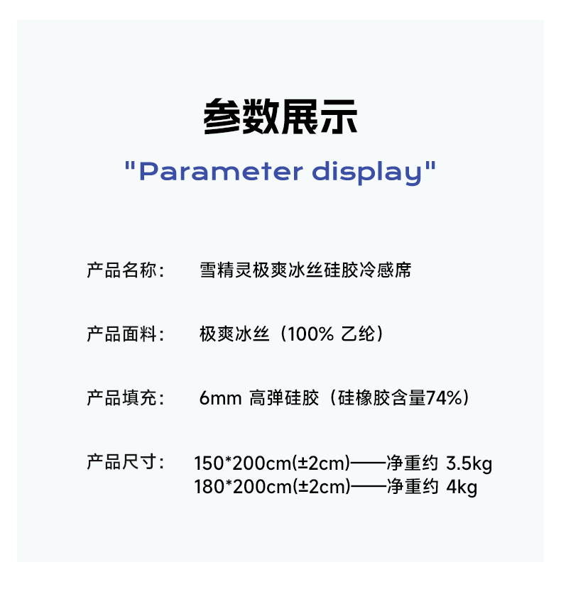 商品名称:【即刻冷感持续冰爽】雪精灵™极爽冰丝100% 乙纶硅胶凉席冷感席冰垫PE冰丝席进口高分子软凉席可机洗抗起球A类母婴