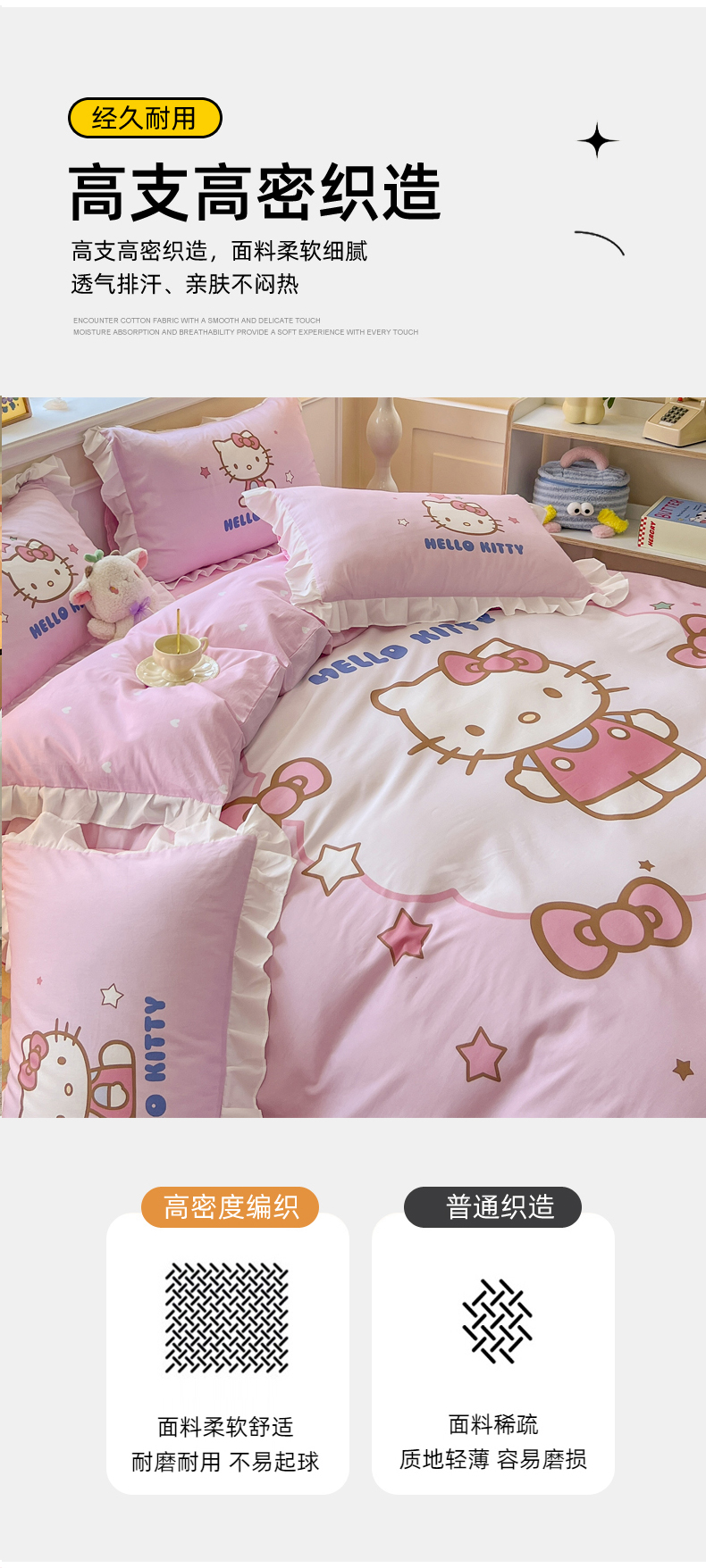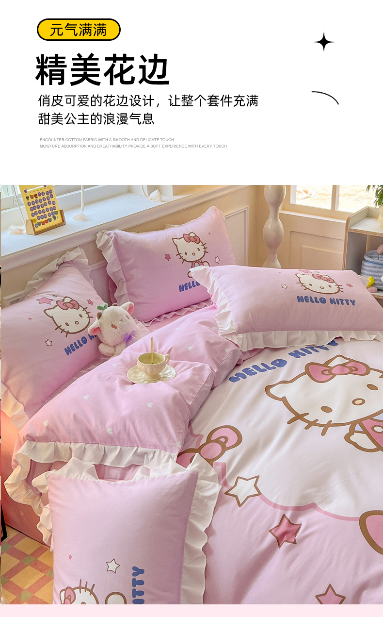 当前位置: 91家纺网 > 商品网购 > 床品套件 > 四件套 > 全棉普通四件套 > 玉元坊 2025新款三丽鸥白花边被套数码印花大版全棉纯棉卡通三四件套 大版花边-凯蒂