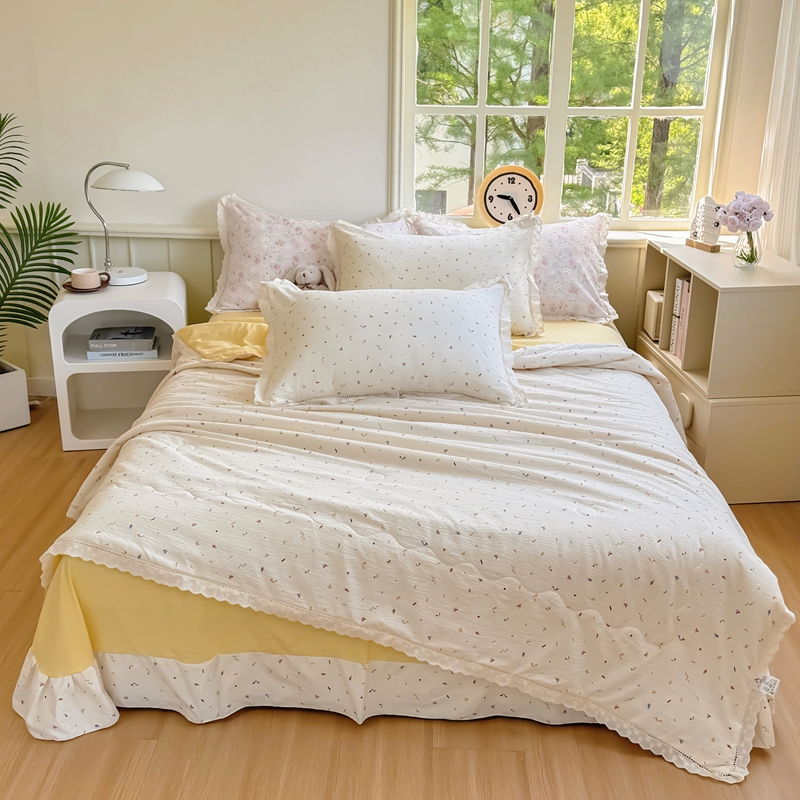 奥虎家纺 2025新款纯棉花边小竹棉夏被四件套 简爱