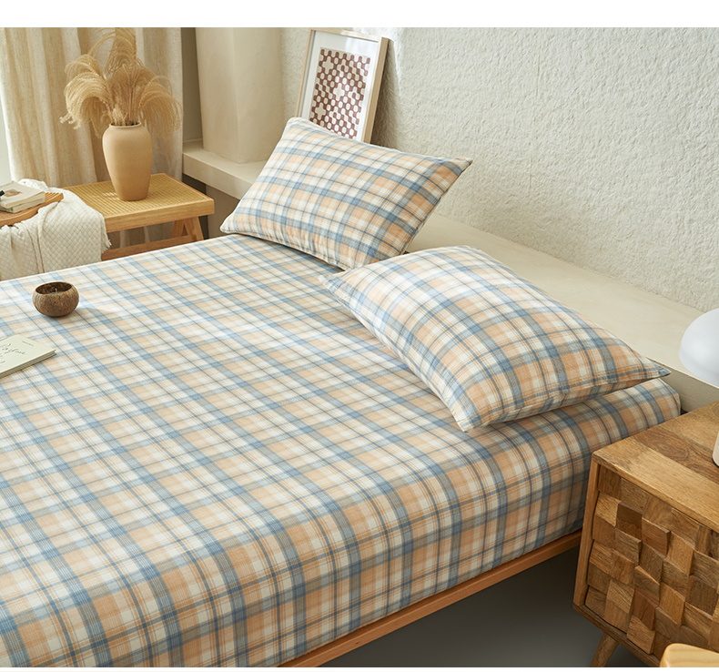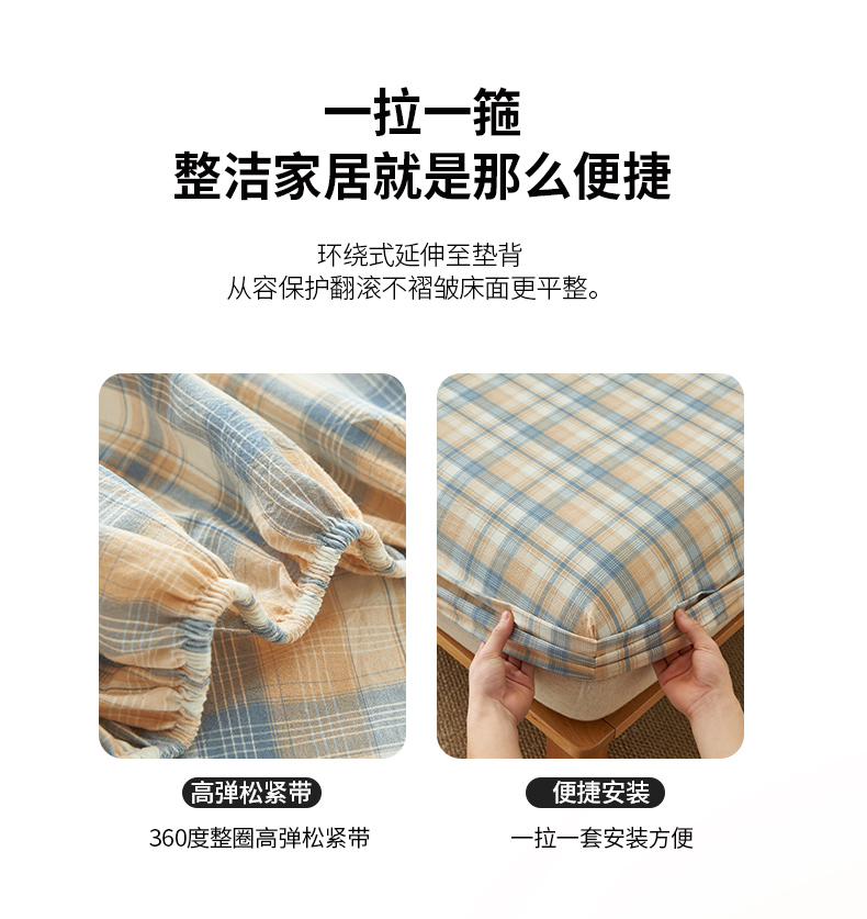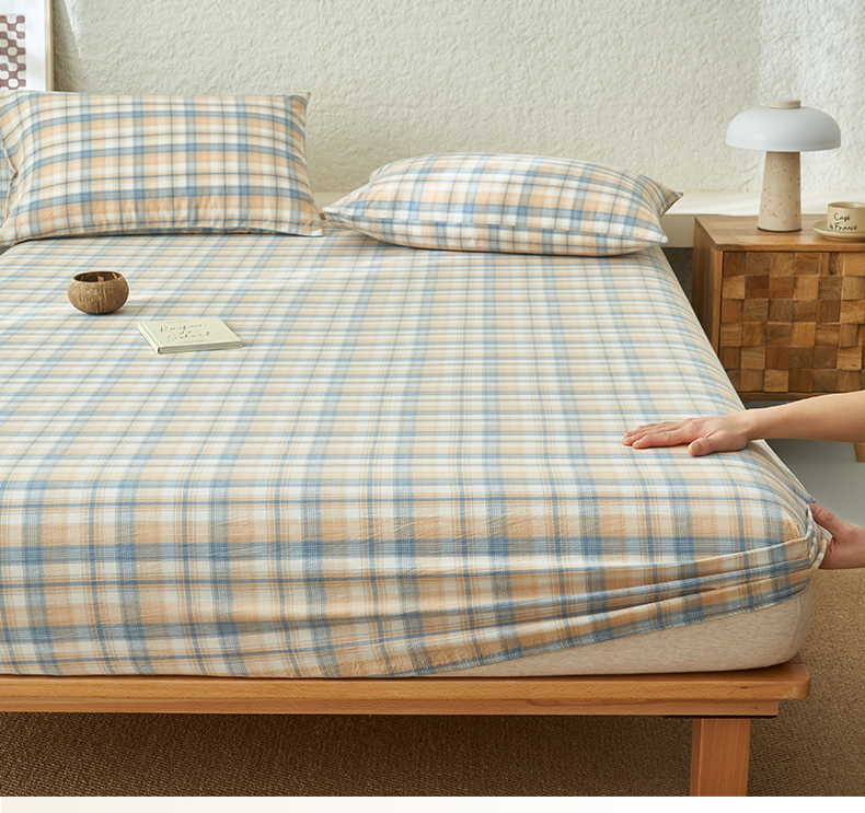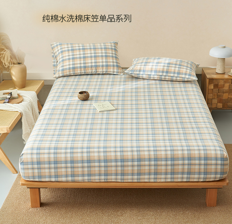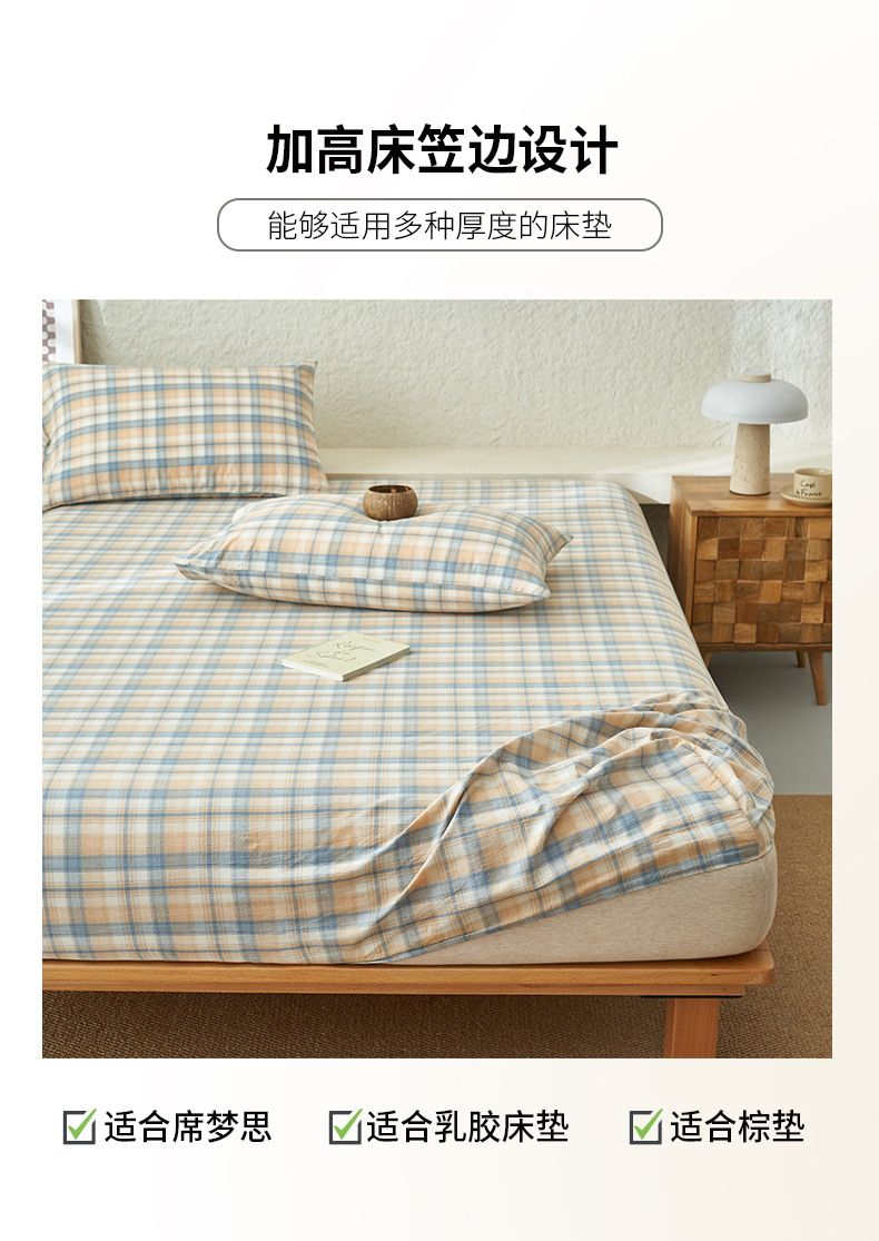 • 91家纺网 家纺一手货源 找家纺 早晨家纺 2025新款色织纯棉水洗棉床笠 云舒-咖