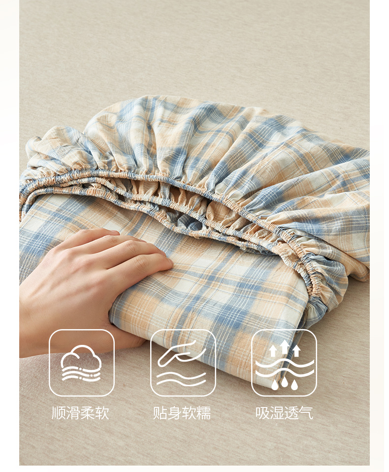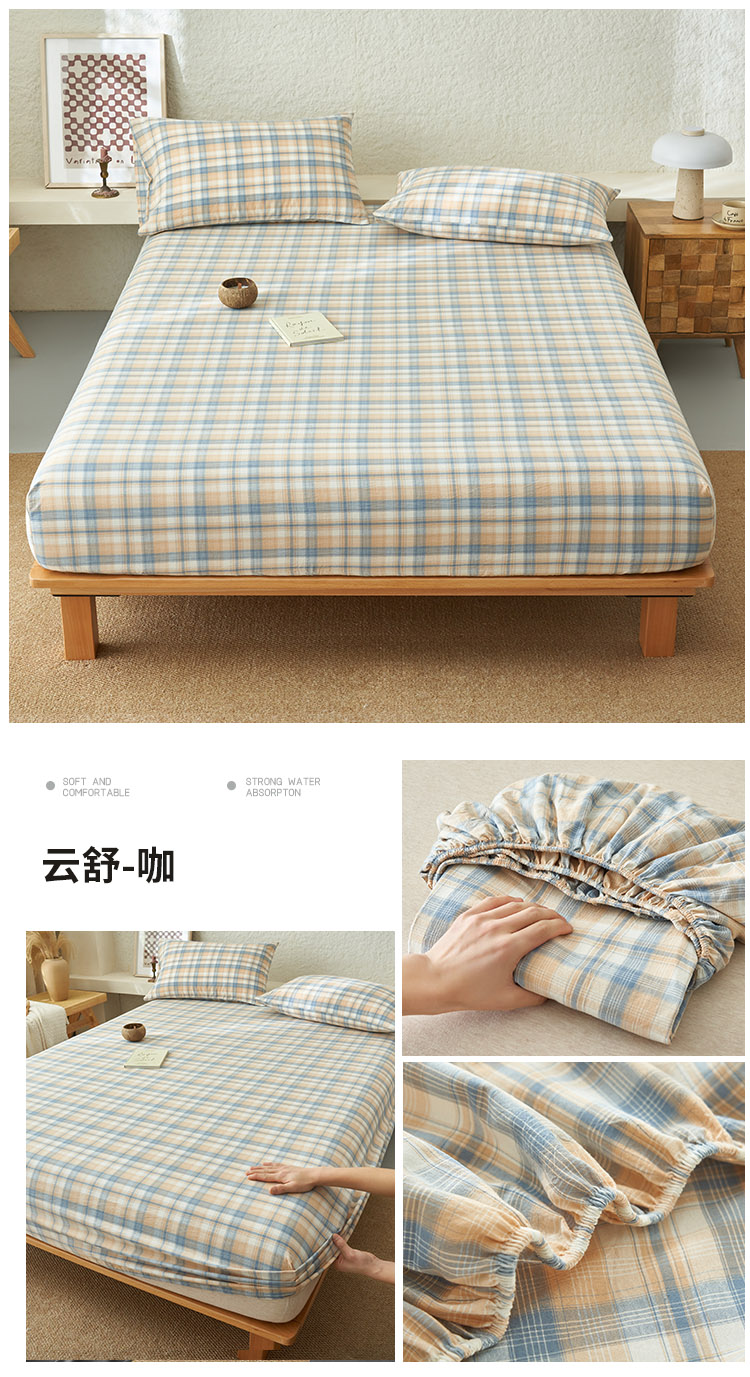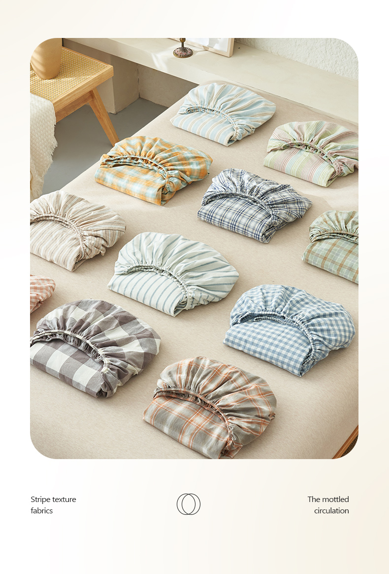 早晨家纺 2025新款色织纯棉水洗棉床笠 云舒-咖