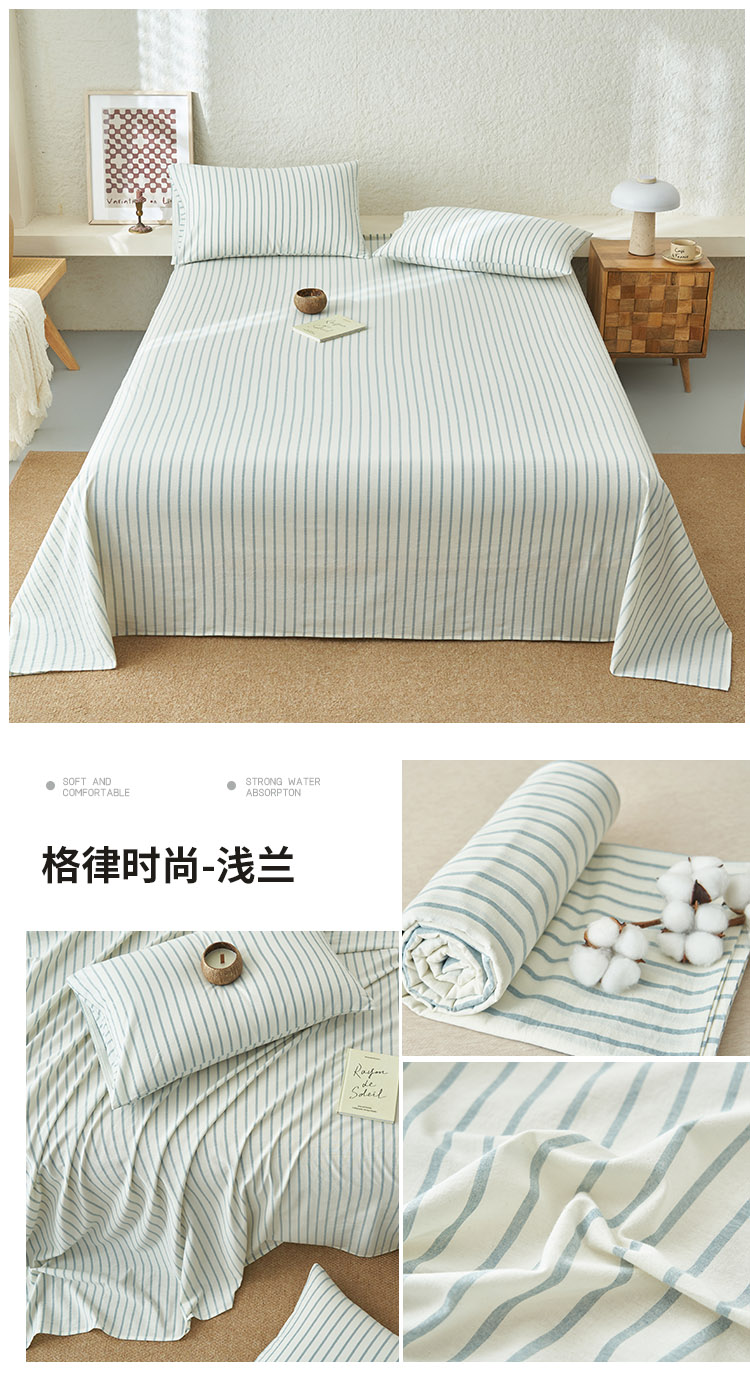早晨家纺 2025新款色织纯棉水洗棉床单 格律时尚-浅兰