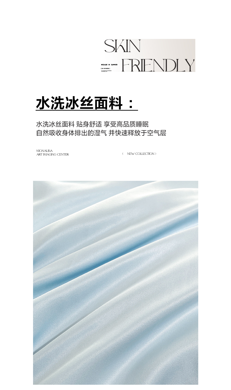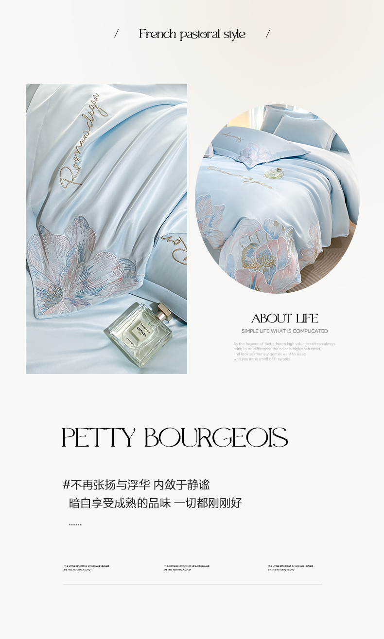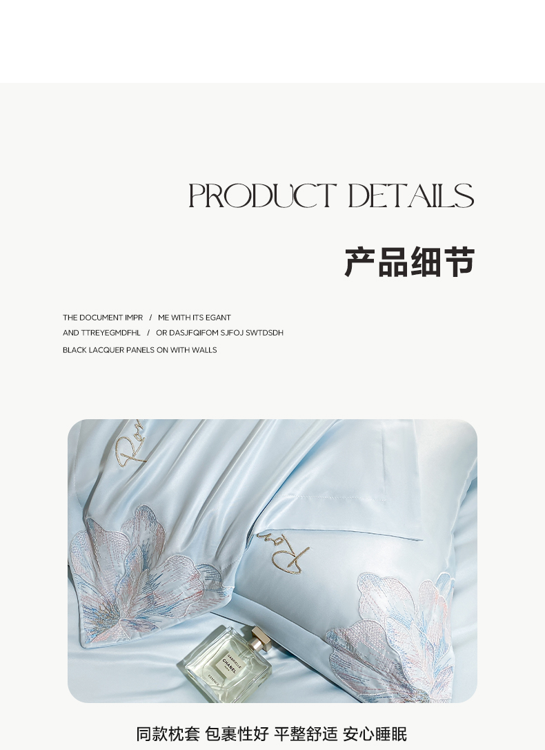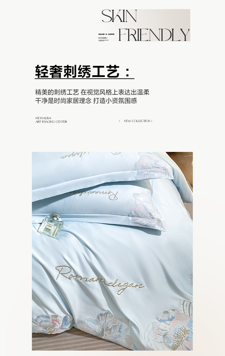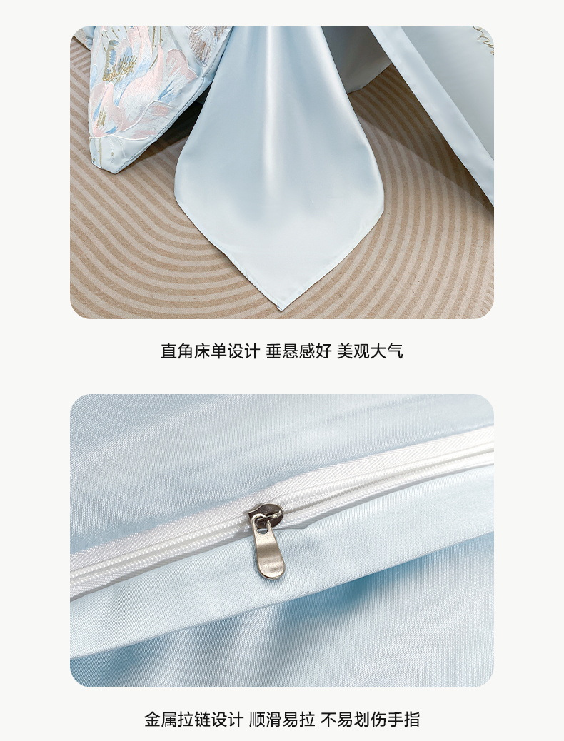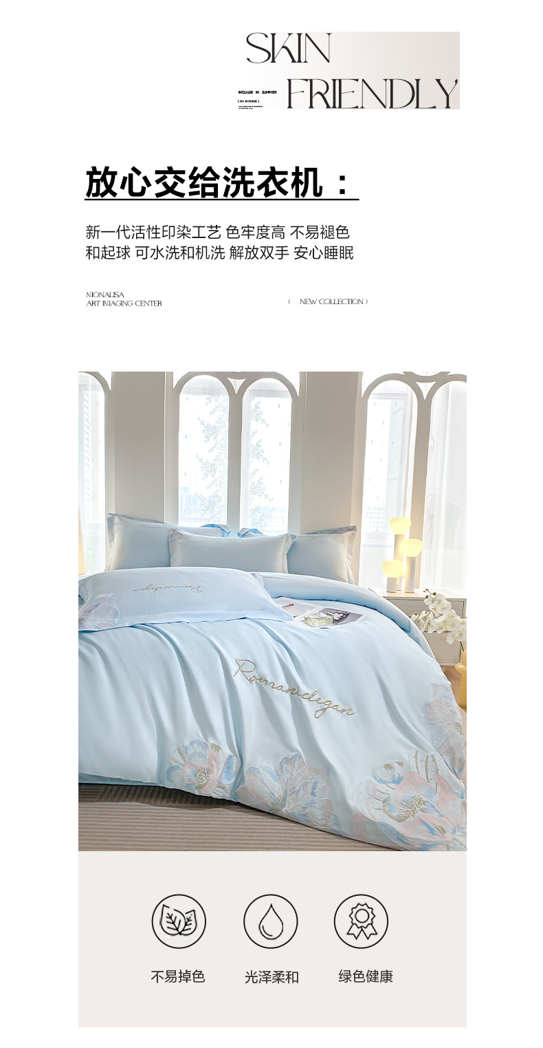 商品名称:花愿(原花纪) 2025新款水洗冰丝刺绣四件套-花恋系列 天空蓝