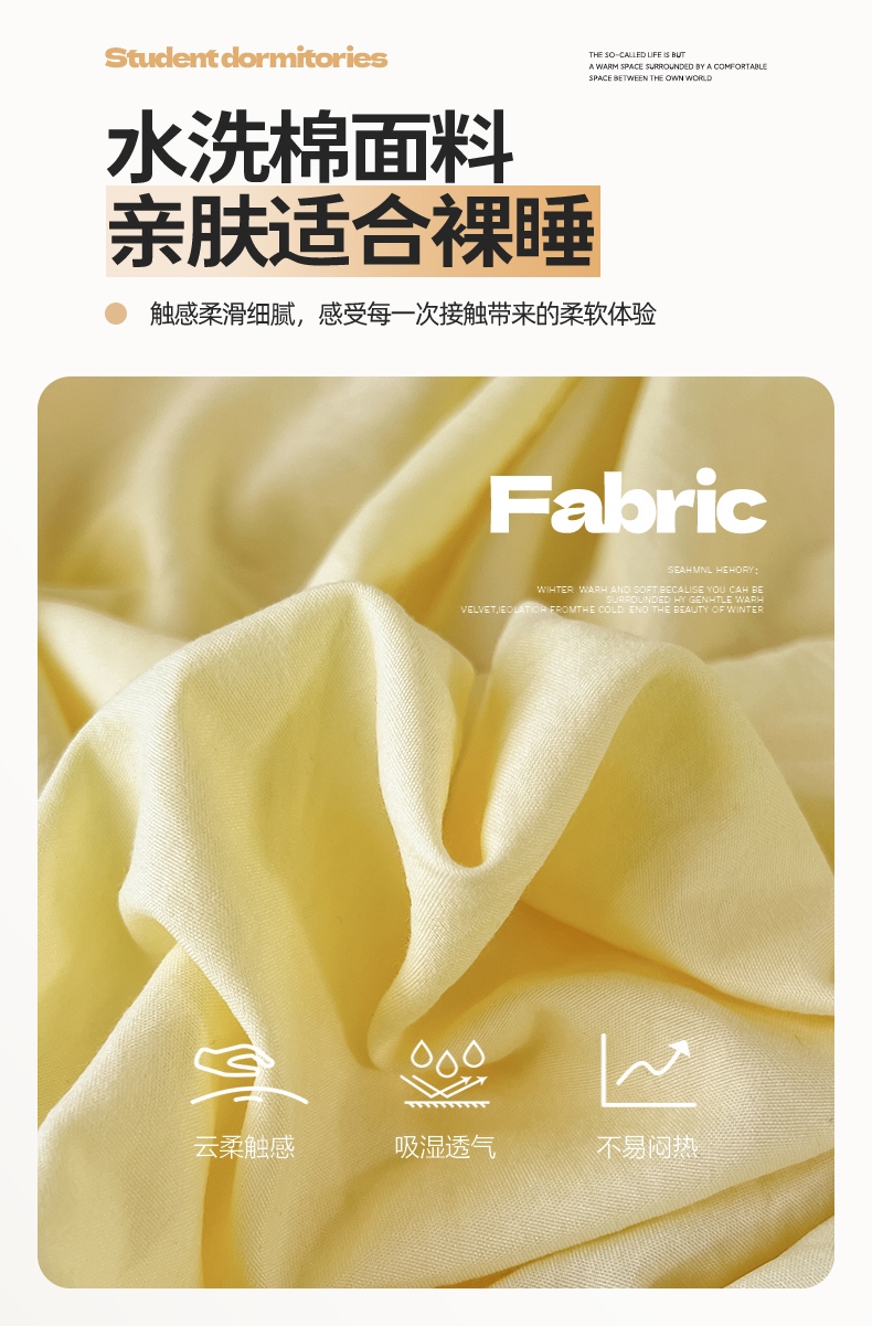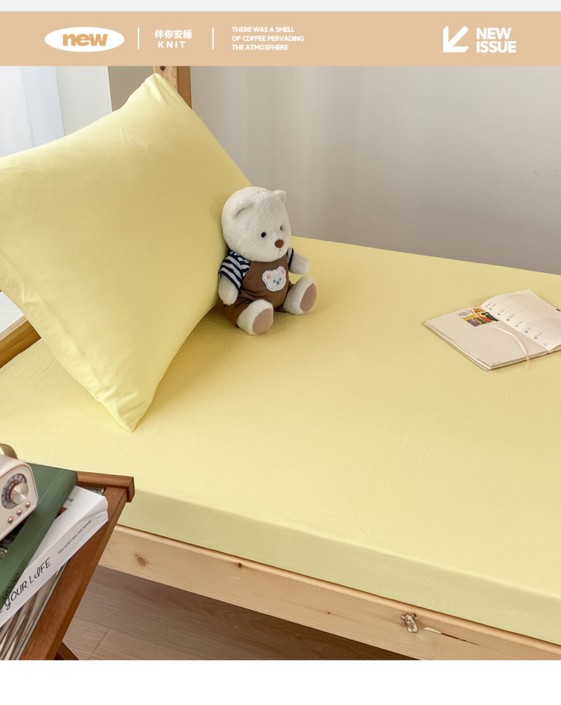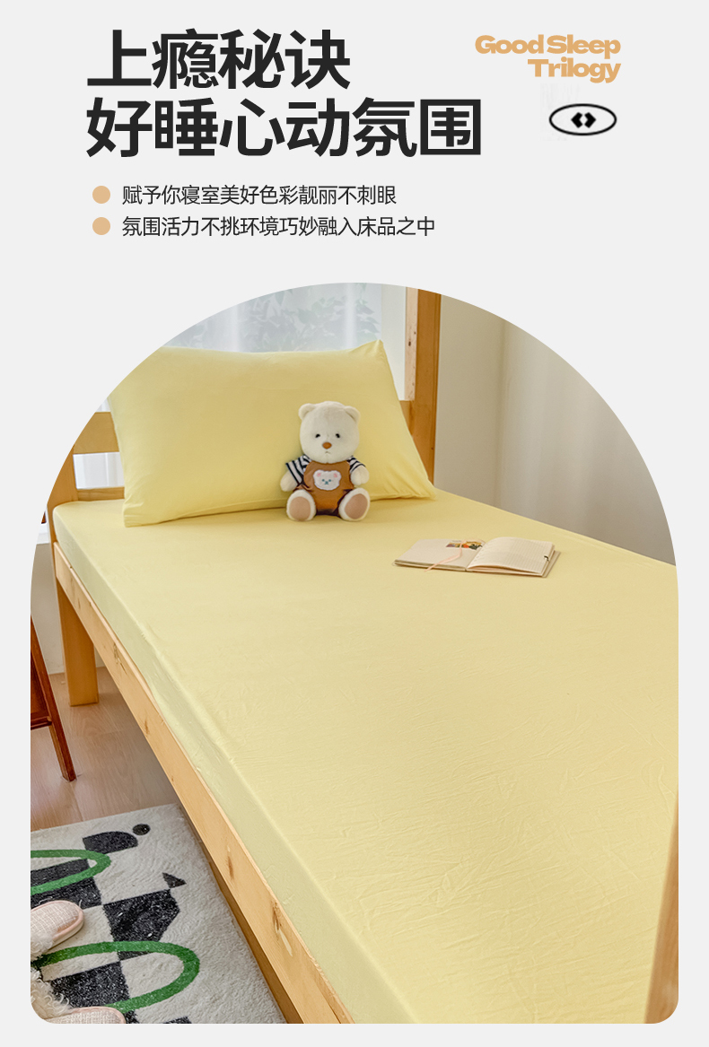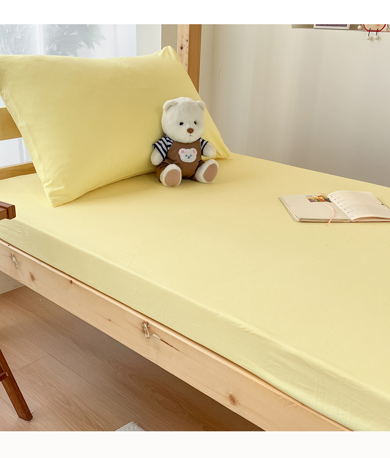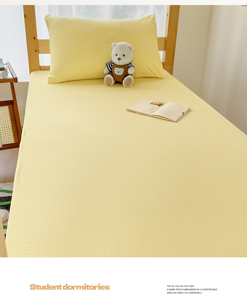 • 91家纺网 家纺一手货源 找家纺 多品家纺 2025春夏新款超柔水洗棉学生宿舍床笠 奶黄