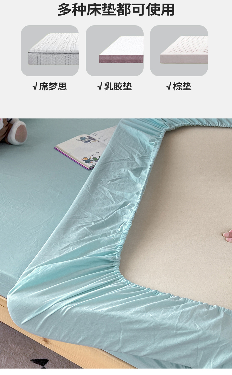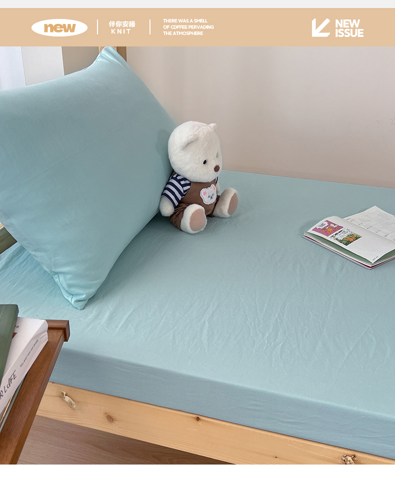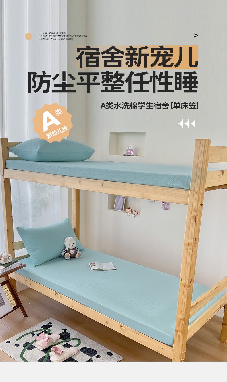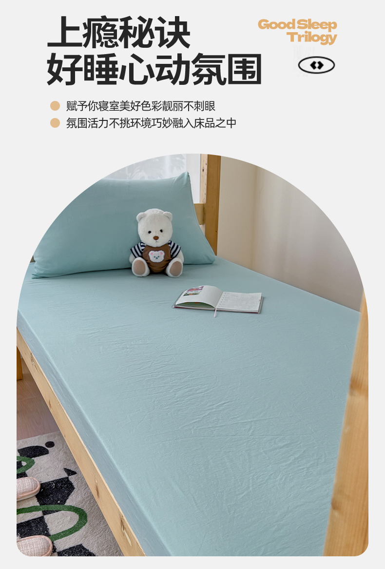 多品家纺 2025春夏新款超柔水洗棉学生宿舍床笠 天空蓝