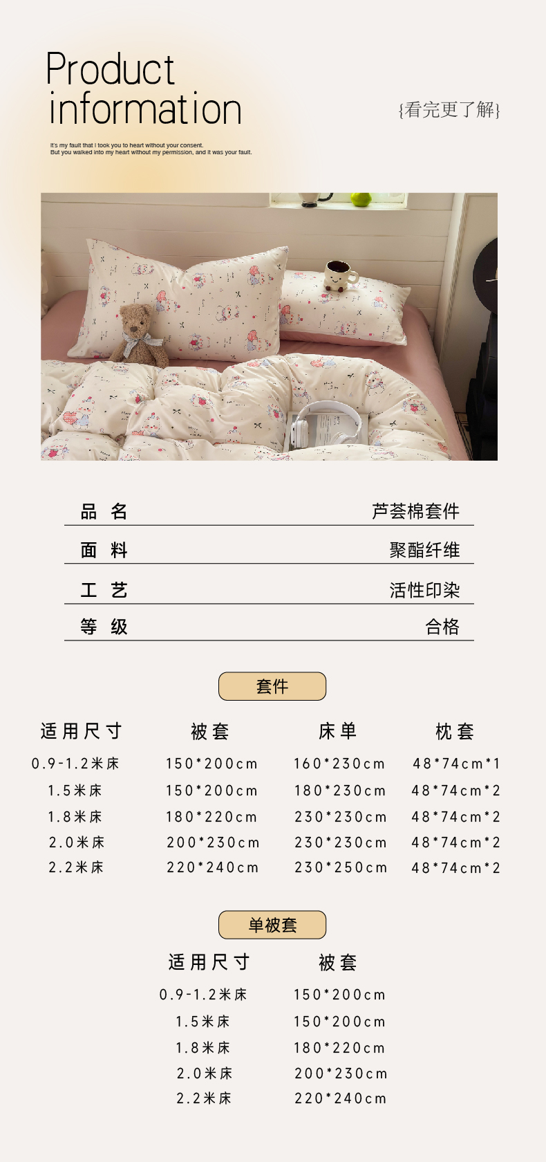 200*230cm单被套 | ¥18.00 |