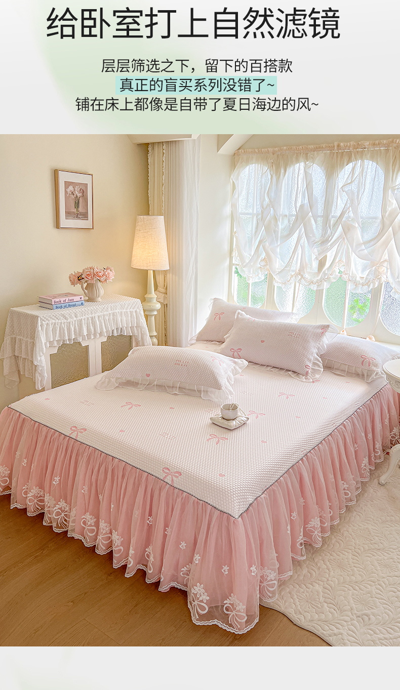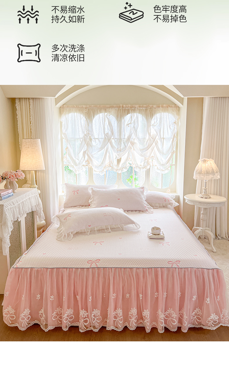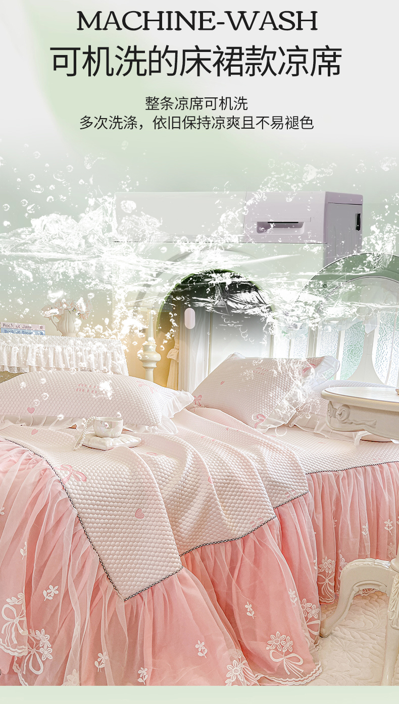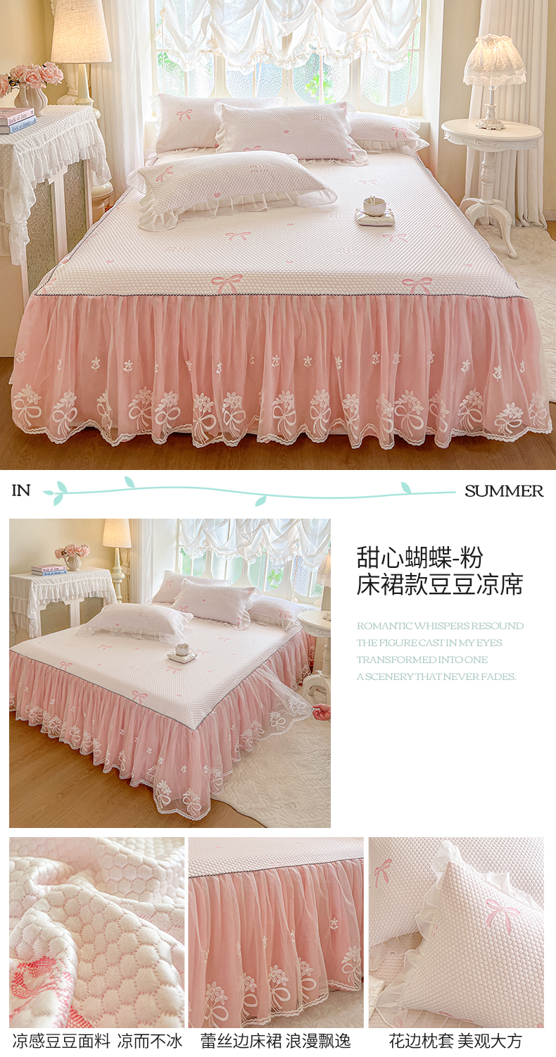 商品名称:(总)网红馆(ck家纺) 2025新款床裙款豆豆凉感席凉席席子-甜心蝴蝶