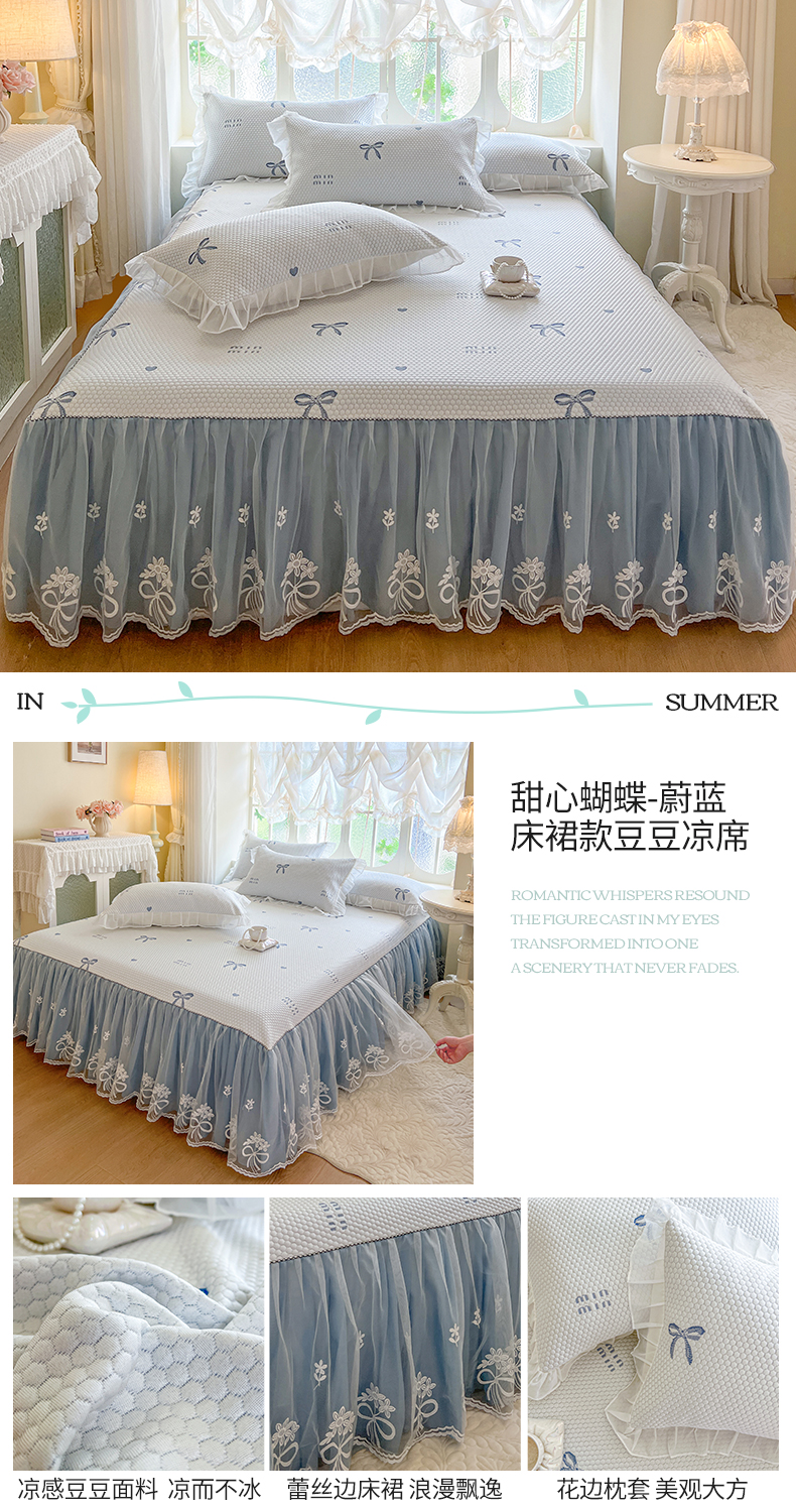 (总)网红馆(ck家纺) 2025新款床裙款豆豆凉感席凉席席子-甜心蝴蝶