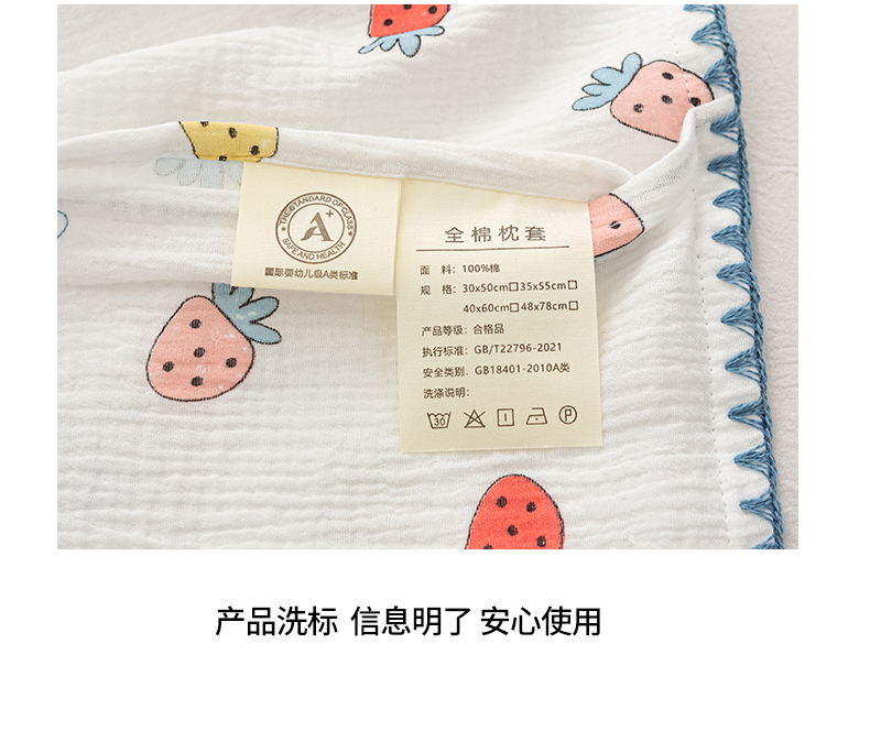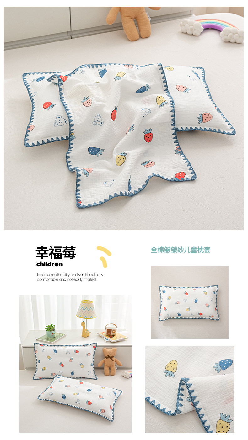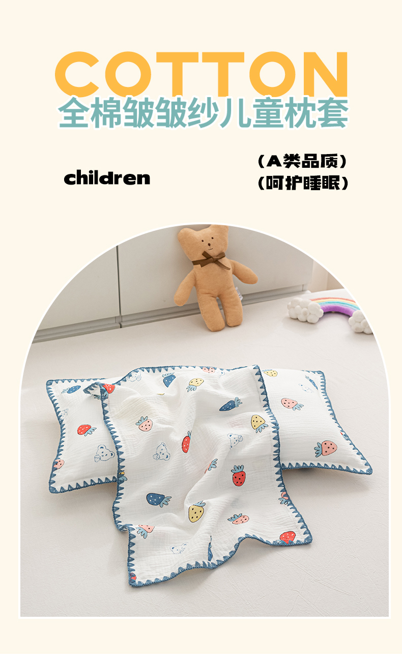 商品名称:(总)萌番宝 2025春夏新款纯棉A类全棉纯棉皱皱双层纱枕套工艺枕套儿童学生成人枕套单枕套
