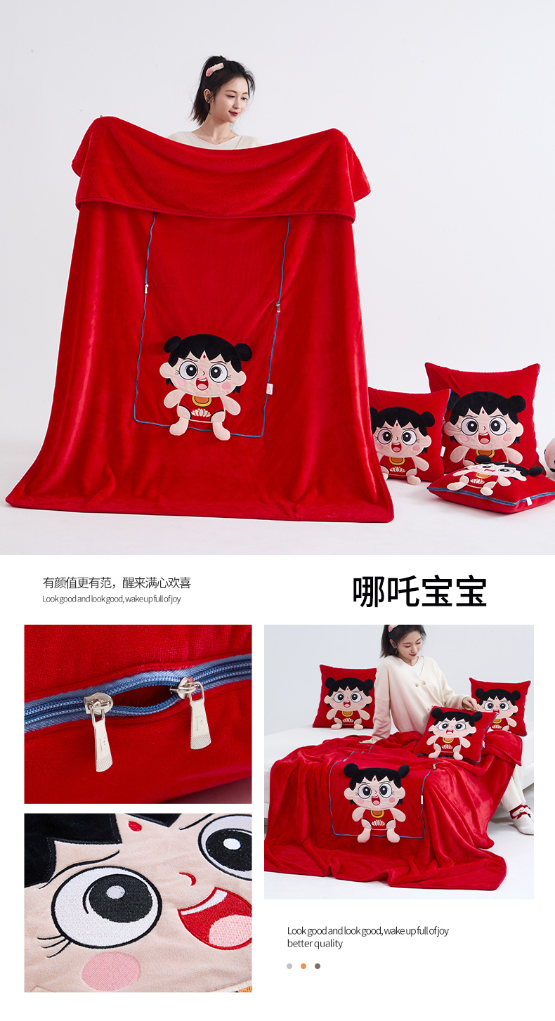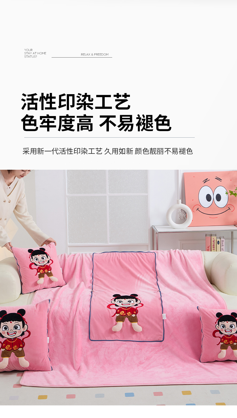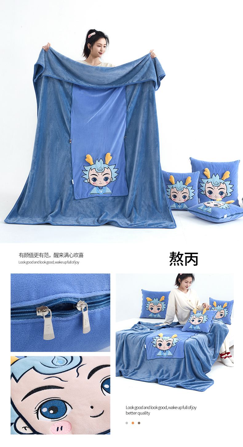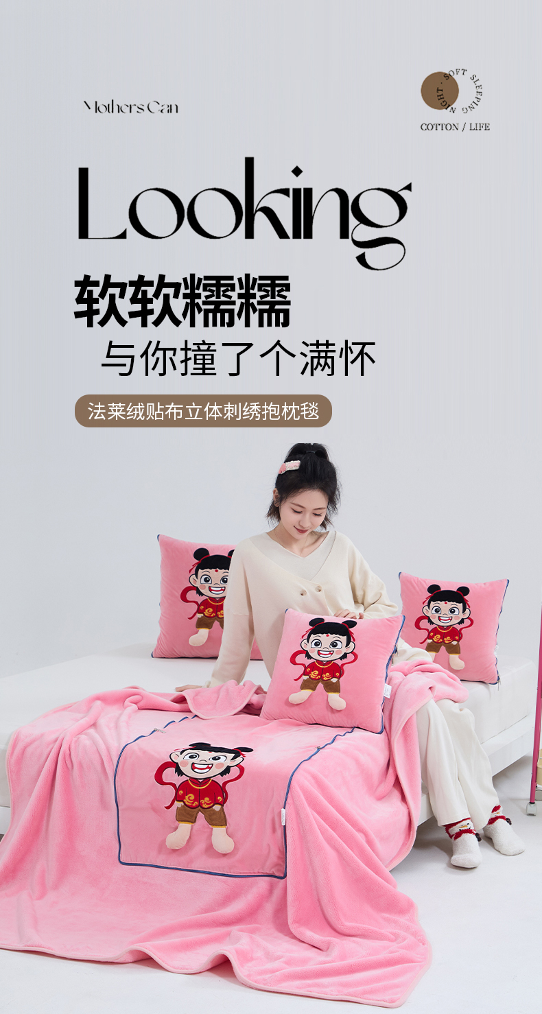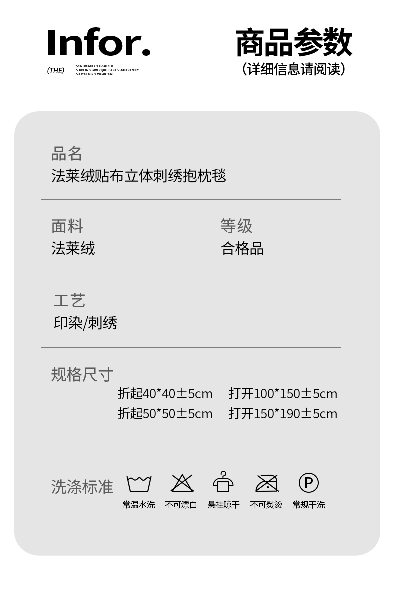 商品名称:(总)吉利家居 2025新款法莱绒贴布立体刺绣抱枕毯
