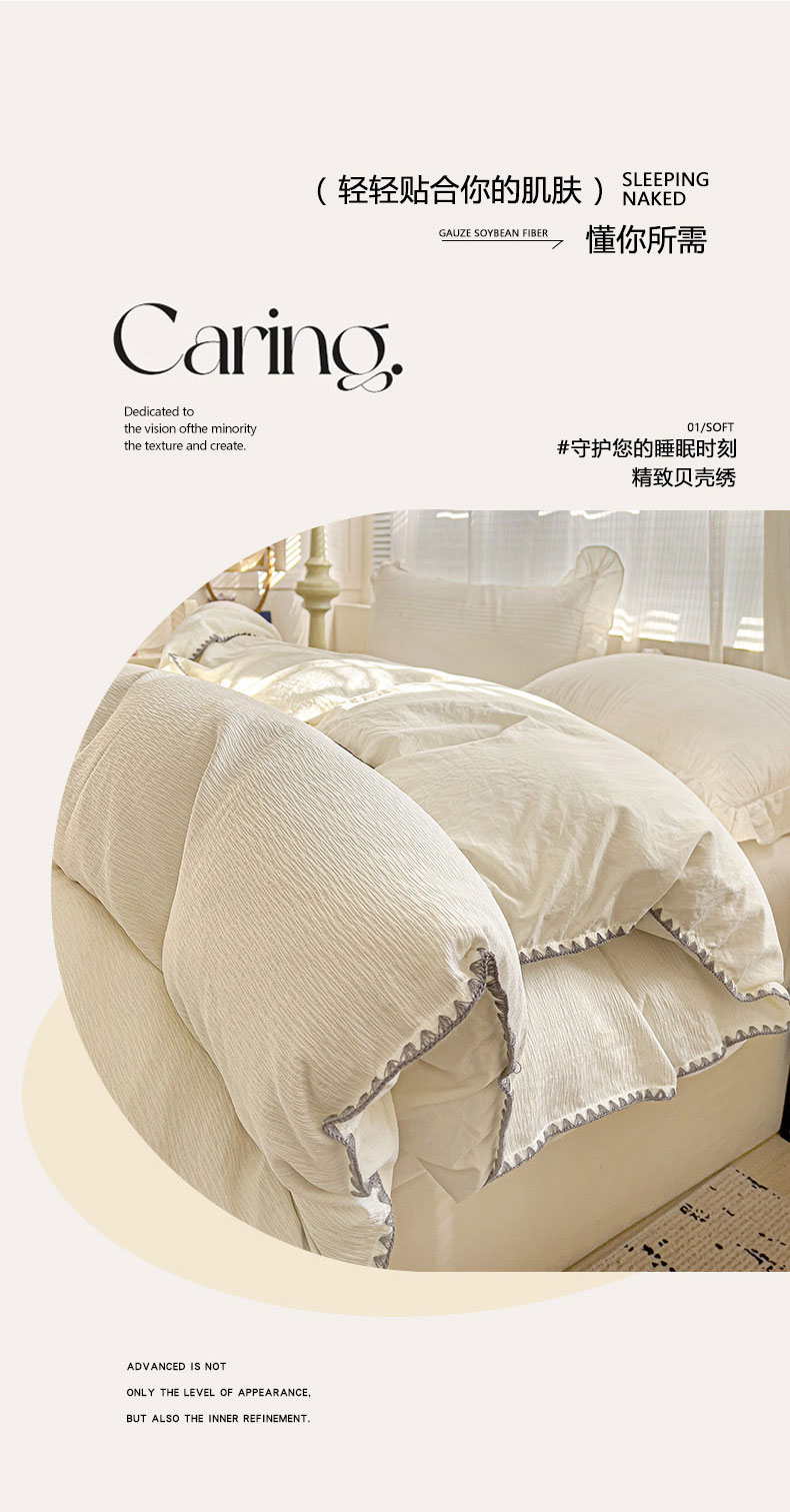 卡普家居 2025新款A类轻奢贝壳绣丝柔缎提花被套 丝柔缎-奶白