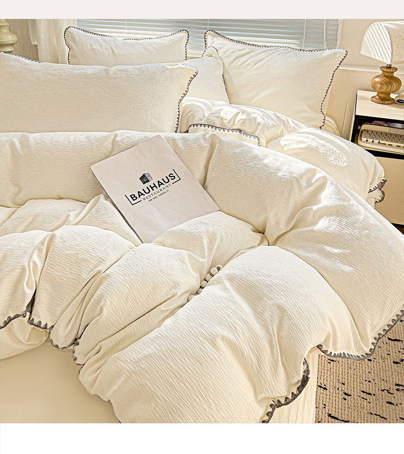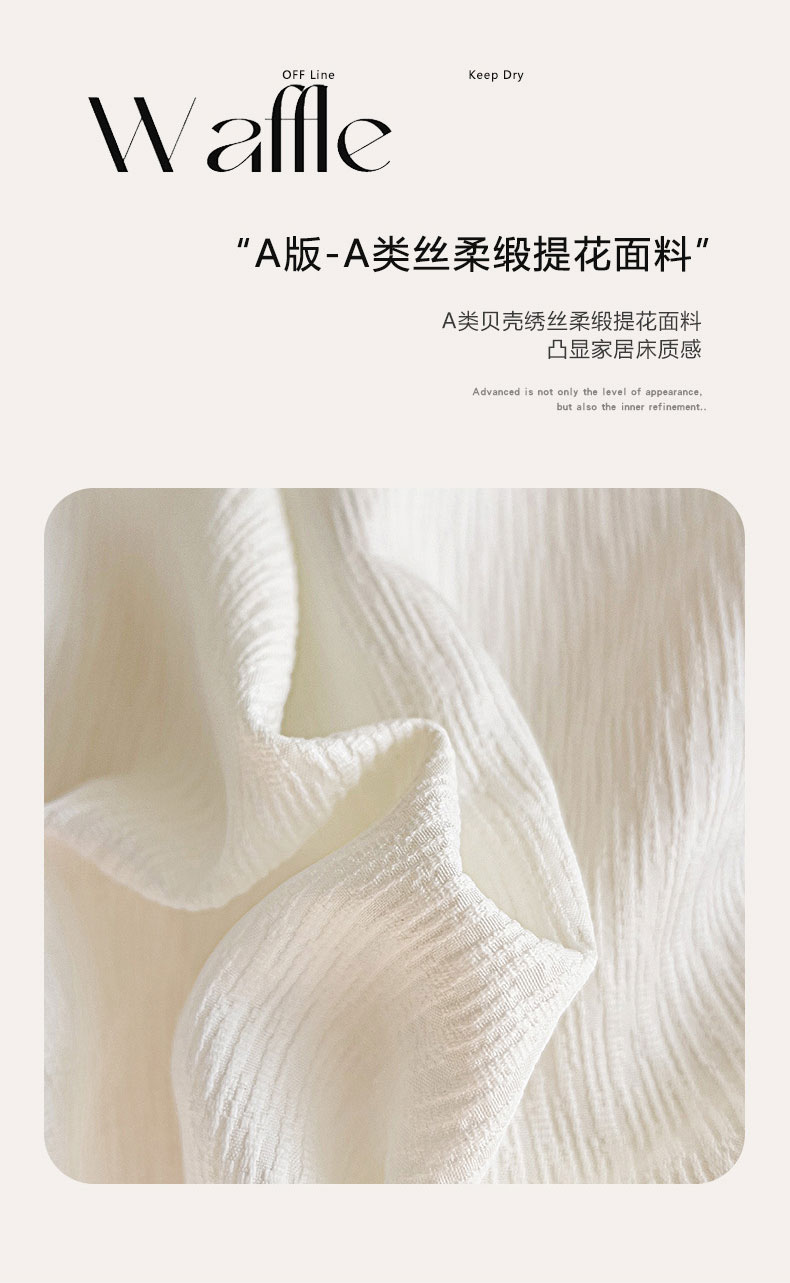 商品名称:卡普家居 2025新款A类轻奢贝壳绣丝柔缎提花被套 丝柔缎-奶白