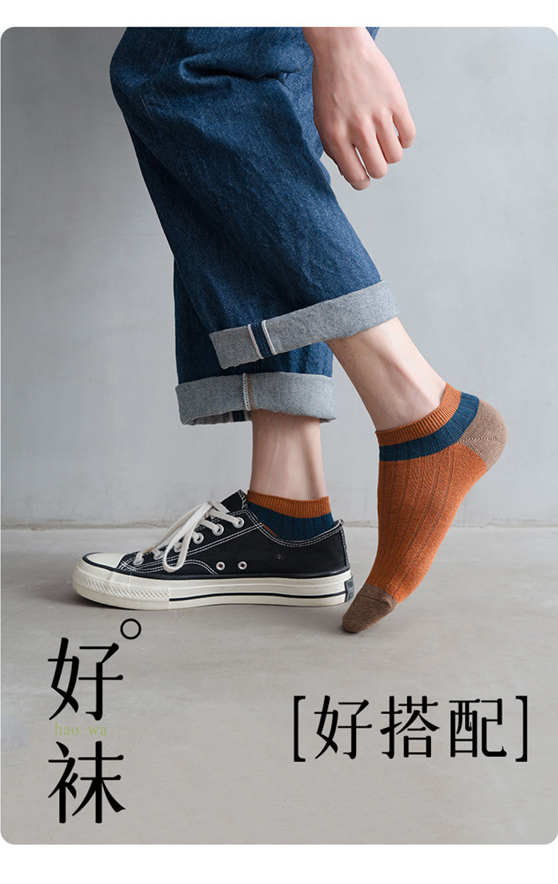 商品名称:【男士拼色暗纹短袜】日式无印男士拼色暗纹短袜良品百搭休闲防臭7A抑菌吸汗袜子船袜夏