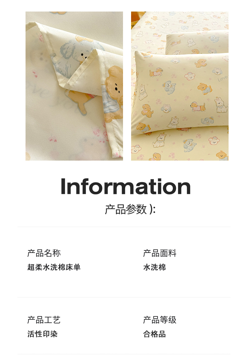 • 91家纺网 家纺一手货源 找家纺 多品家纺 2025春夏新款超柔水洗棉单床单 床单单件 萌宠