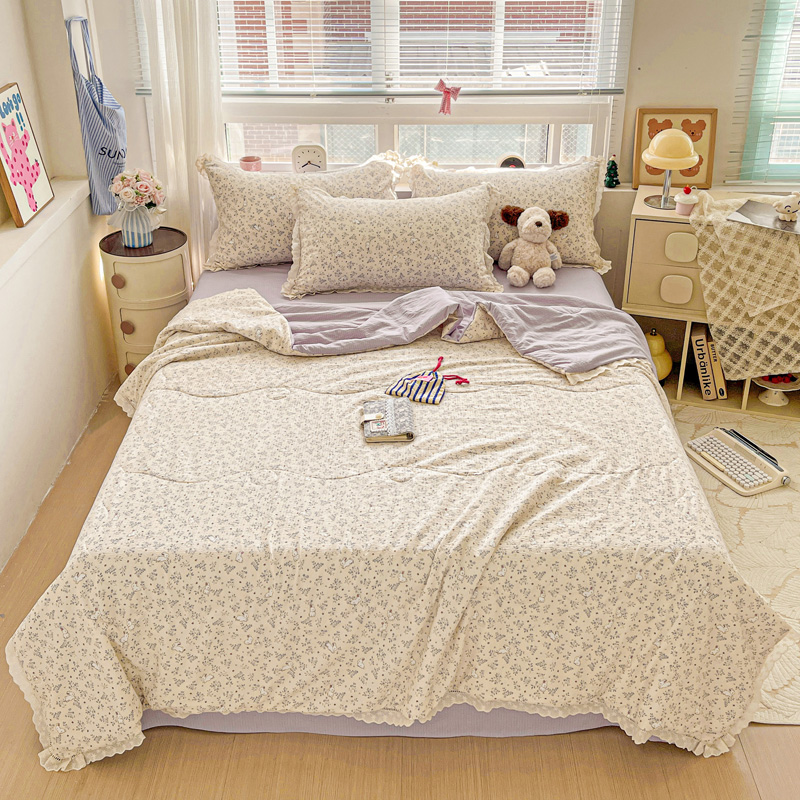 商品名称:梦莱斯 2025新款云感木棉皱皱纱全棉花边款夏被四件套 春不晚