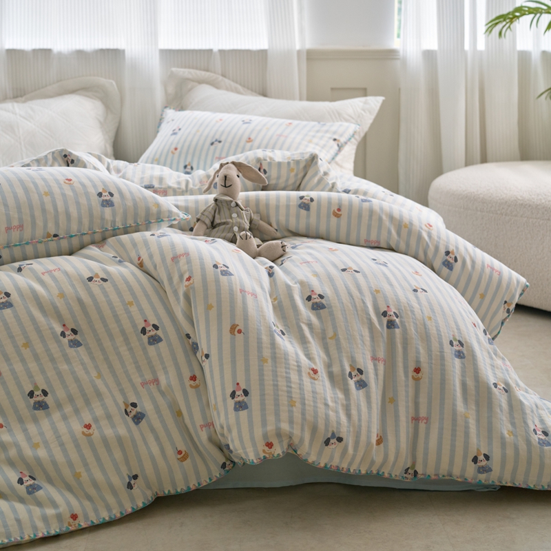 洋铭区(原狠狠爱) 2025新款全棉彩边双层四件套 可爱娃娃