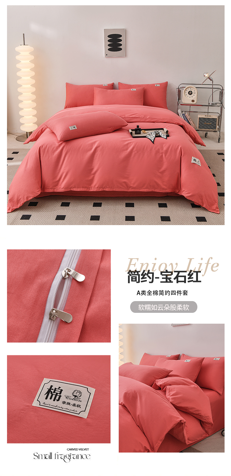 (总)宇彬家纺 2026新款A类13374全棉纯棉母婴级纯色四件套贡缎新疆长绒轻奢缩水足可定做,一字绣-宝石红,一字绣-宾利蓝,一字绣-典雅紫,一字绣-摩卡绿,一字绣-奶油粉,一字绣-绅士灰,一字绣-炫彩绿,一字绣-紫豆沙