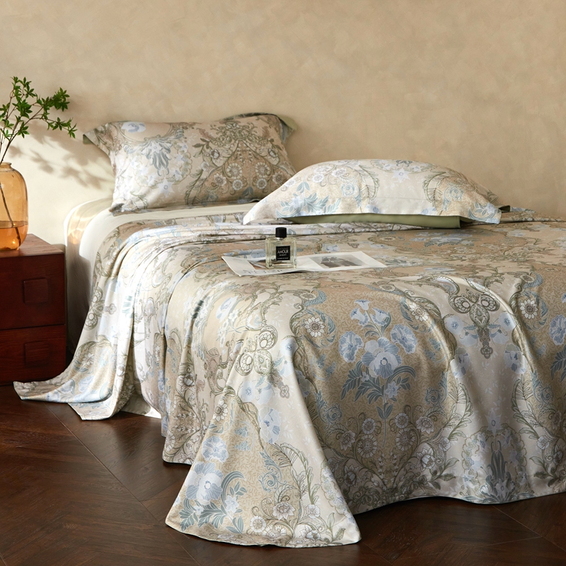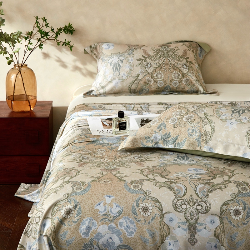 2022新款60支雅棉夏被+夏被四件套 古案(绿),古案(绿)