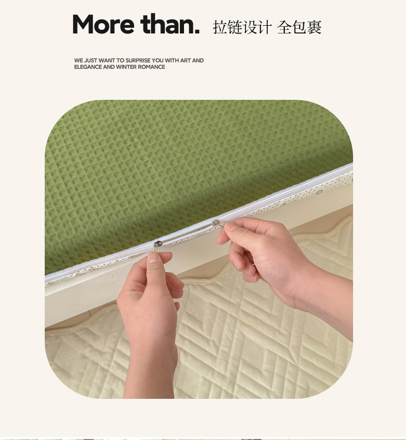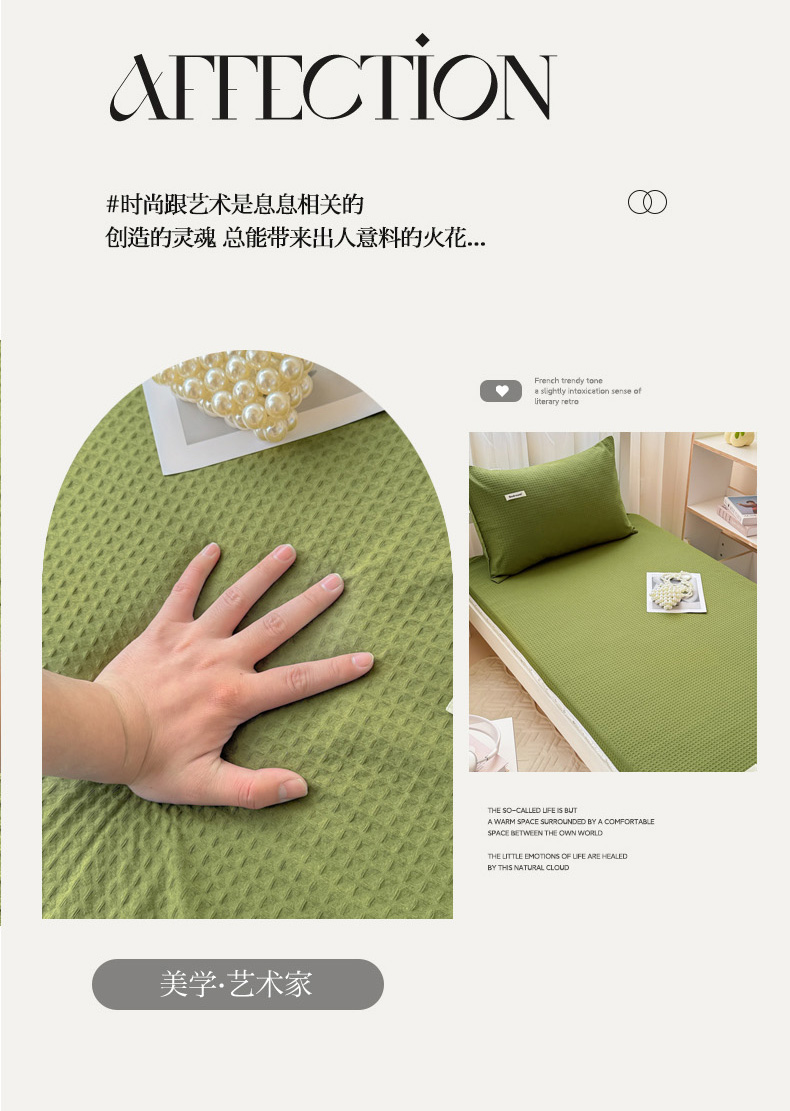 • 91家纺网 家纺一手货源 找家纺 眠博士 2025新款全棉纯棉华夫格学生床床垫套床垫套单件单床垫套 华夫格床垫套 松石绿
