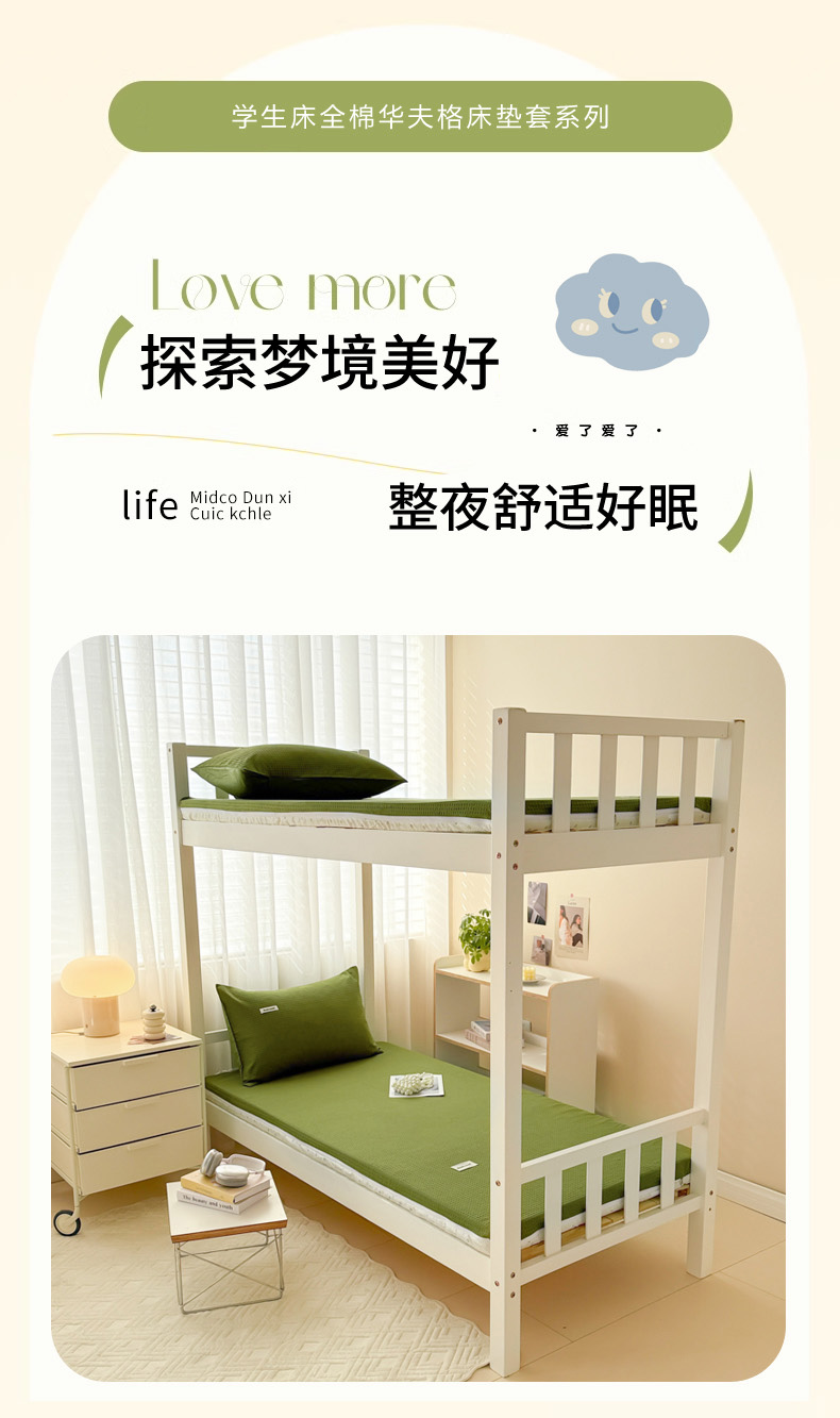 当前位置: 91家纺网 > 商品网购 > 床垫/床褥 > 眠博士 2025新款全棉纯棉华夫格学生床床垫套床垫套单件单床垫套 华夫格床垫套 松石绿