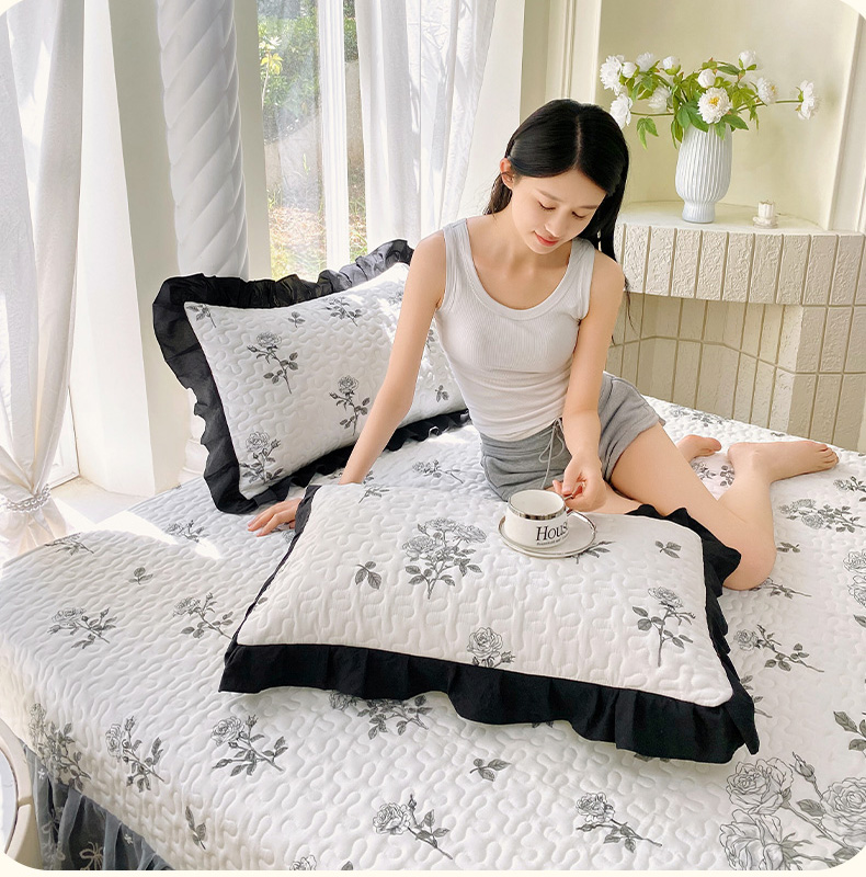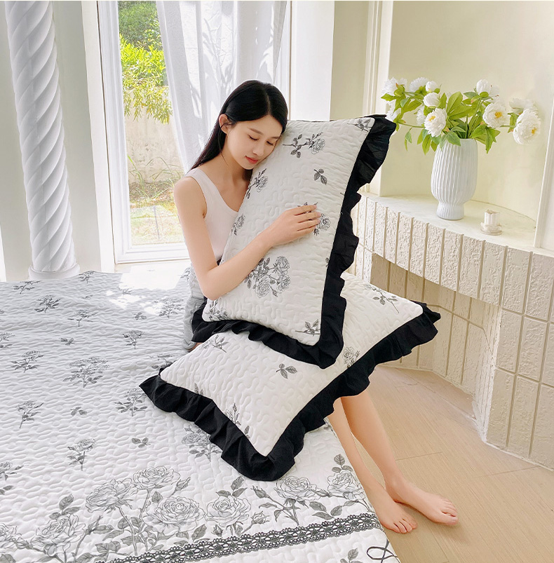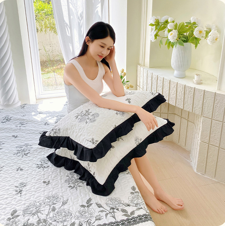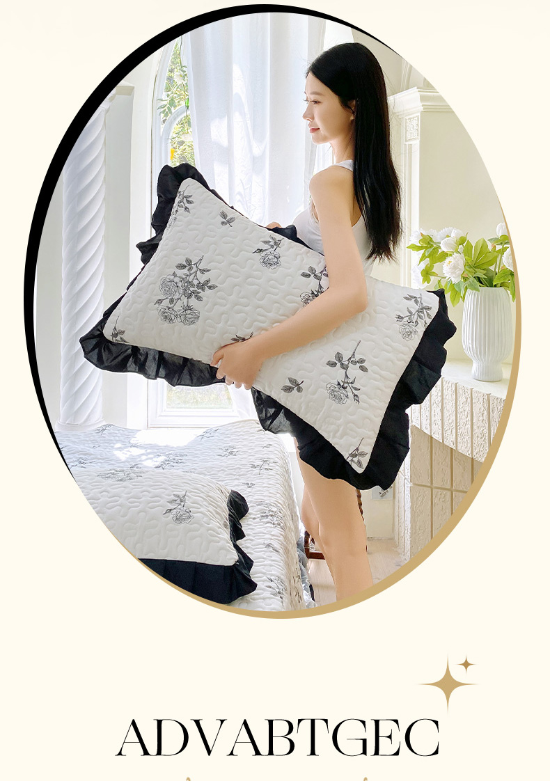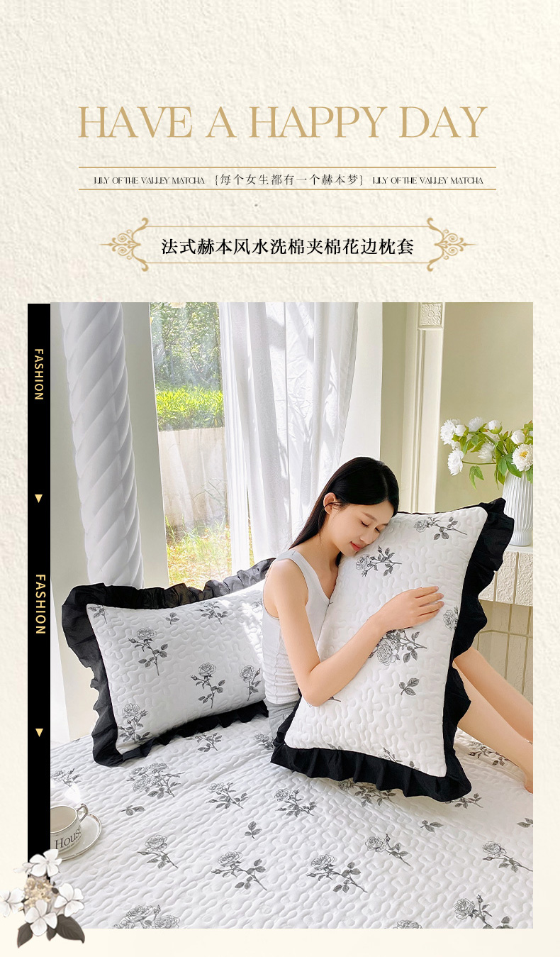 (总)雨彤家纺2025新款赫本风水洗棉夹棉花边枕套