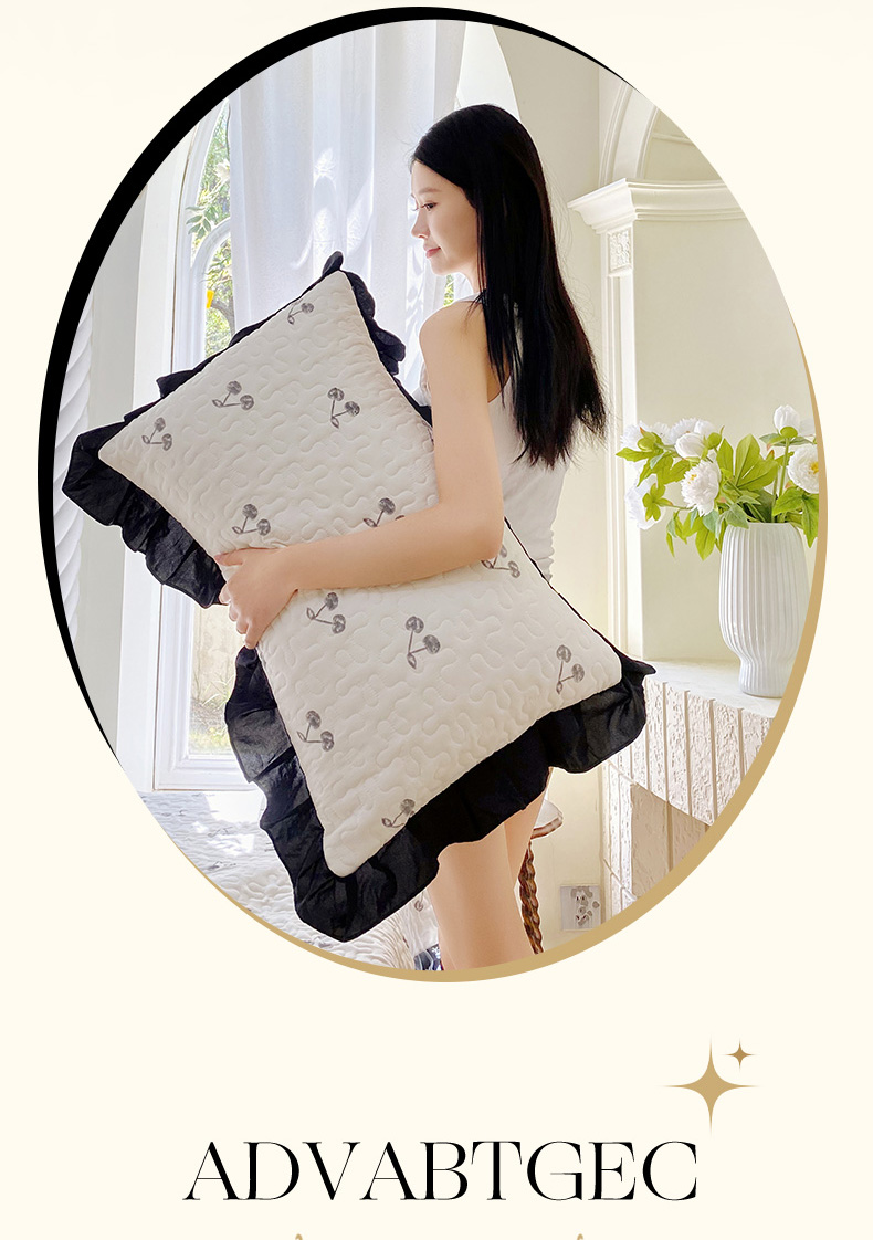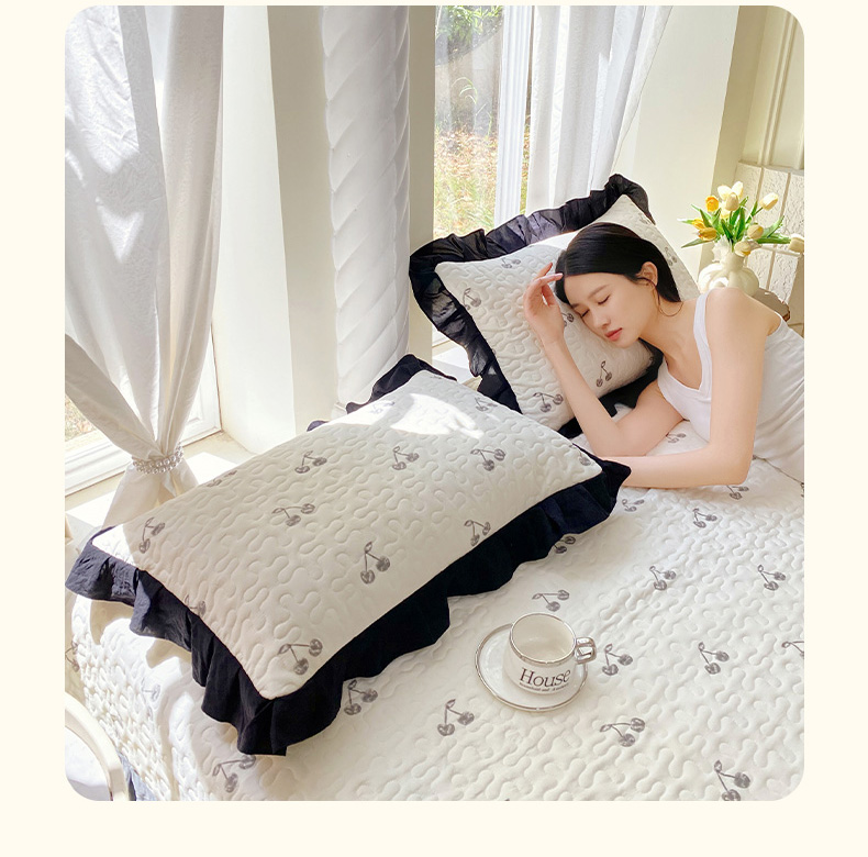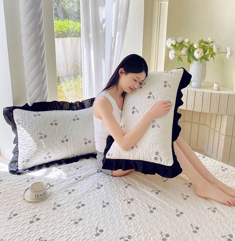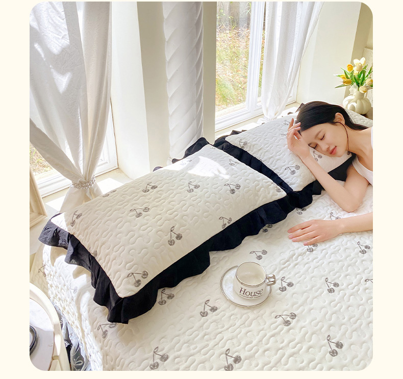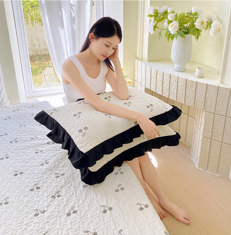 雨彤家纺2025新款赫本风水洗棉夹棉花边枕套 樱桃