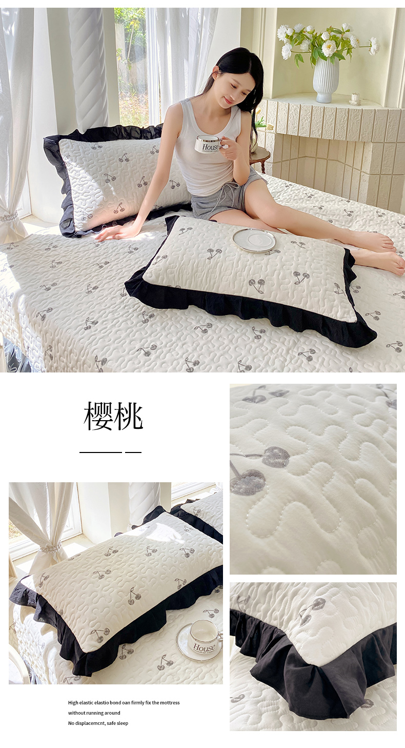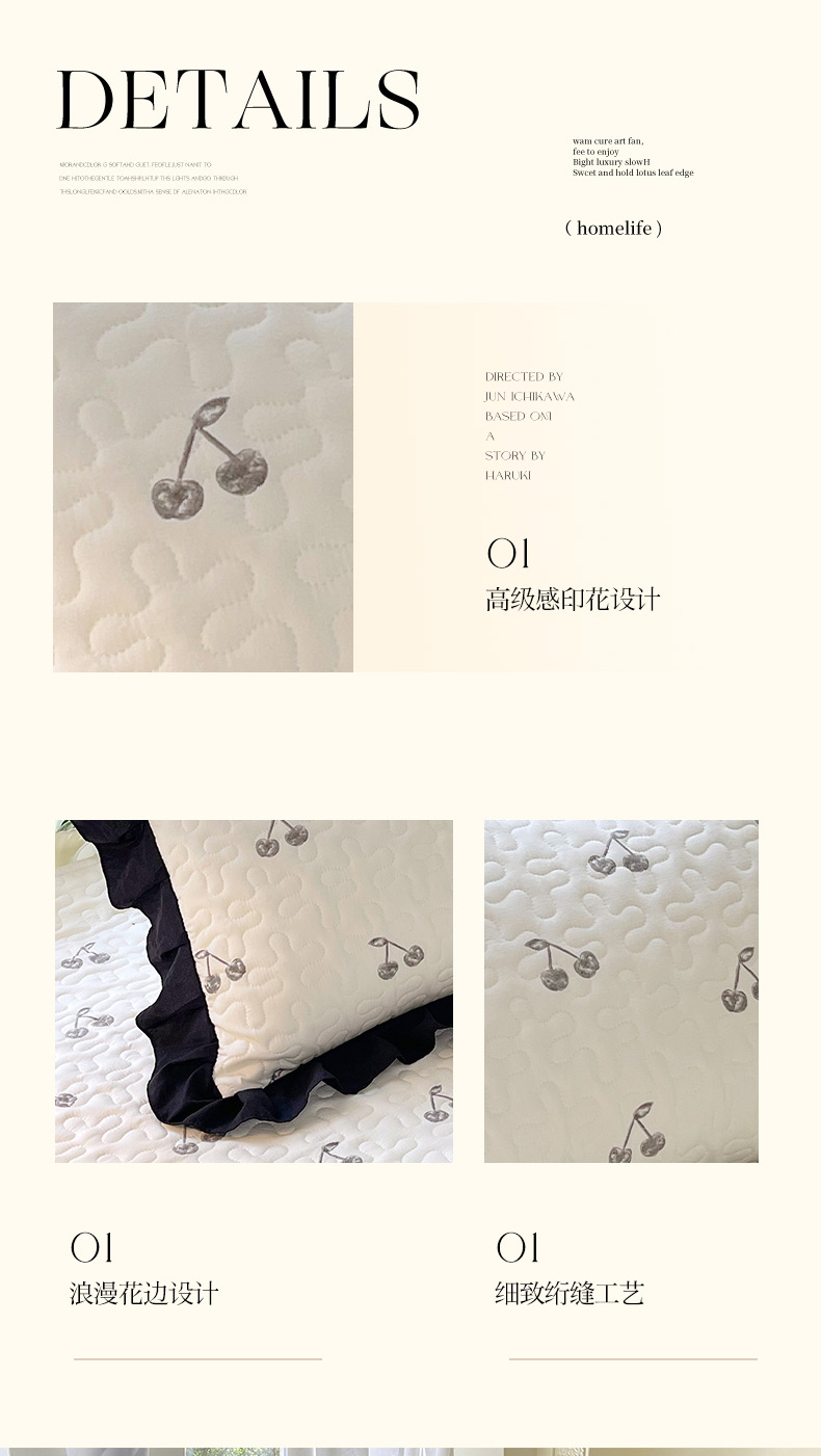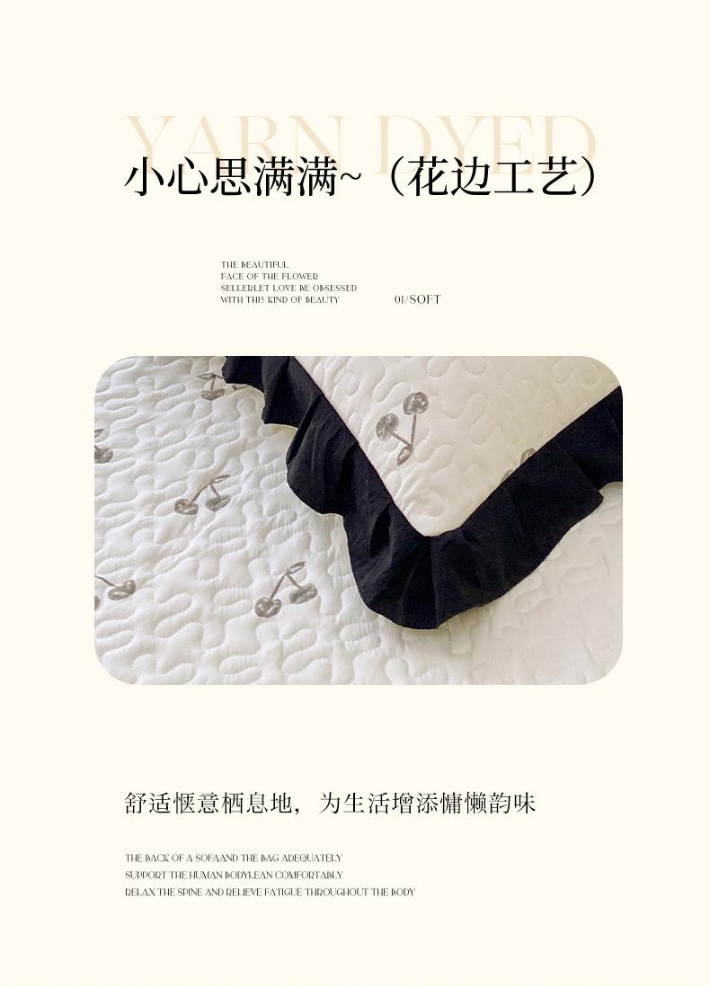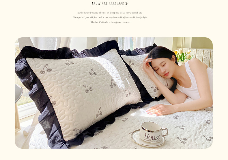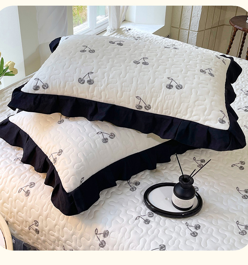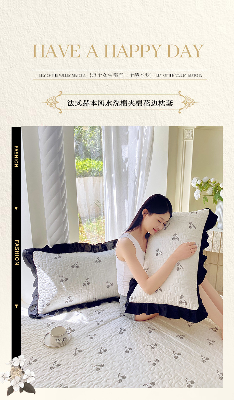 商品名称:雨彤家纺2025新款赫本风水洗棉夹棉花边枕套 樱桃