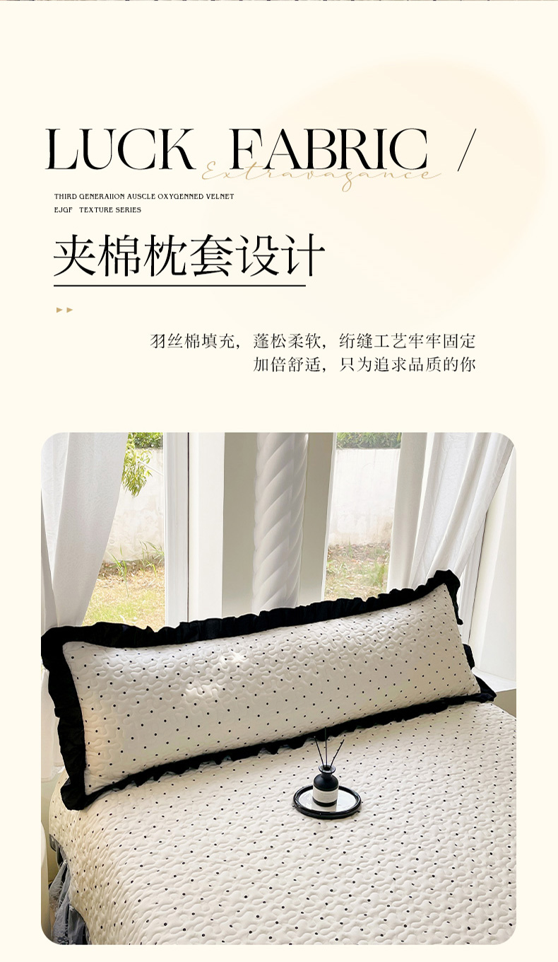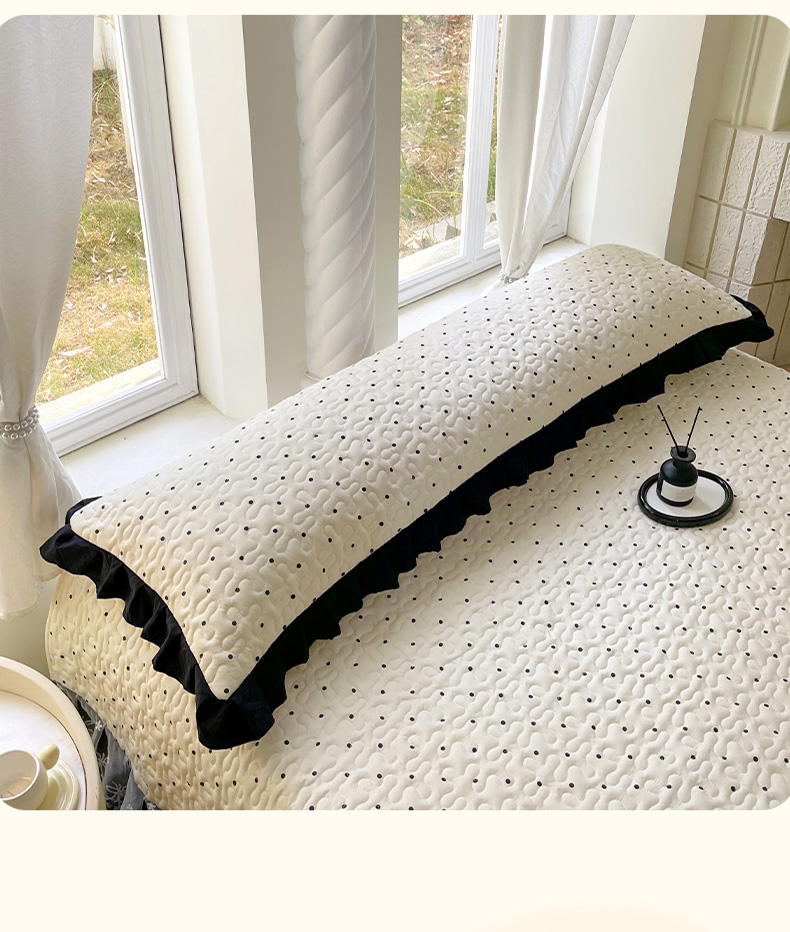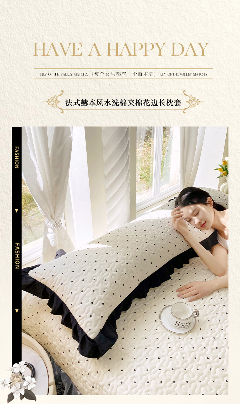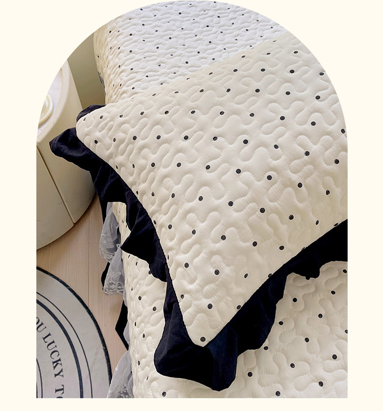 商品名称:雨彤家纺2025新款赫本风水洗棉花边夹棉枕套双人款 小波点