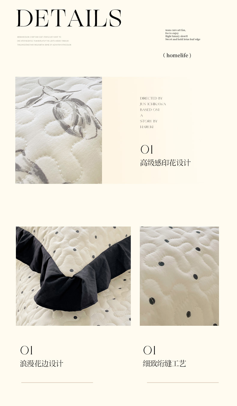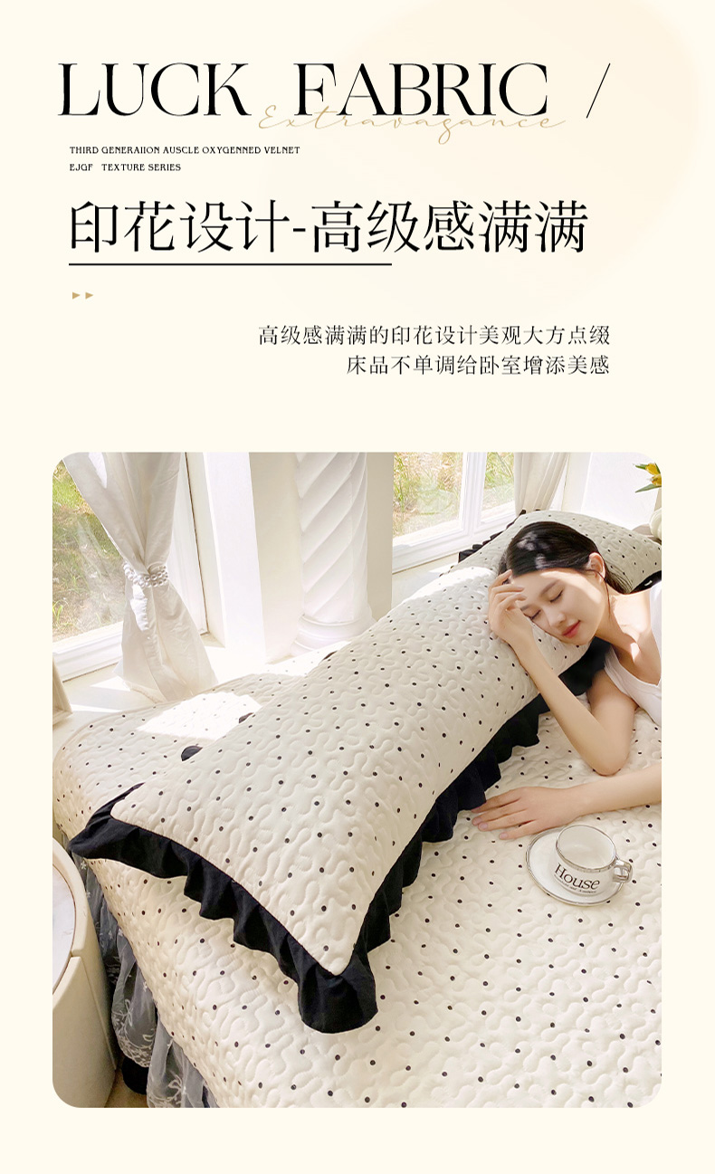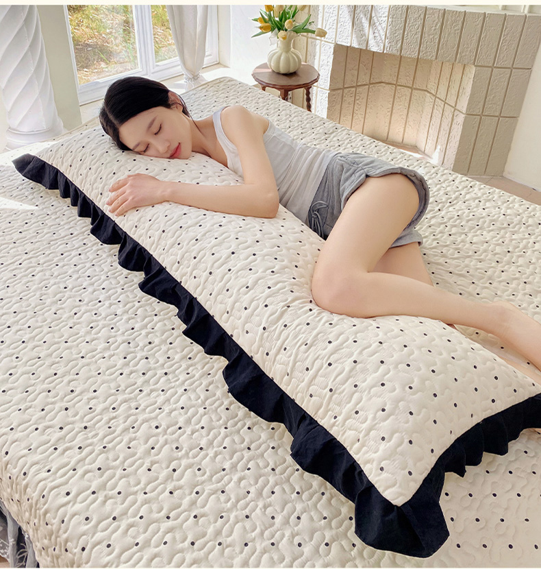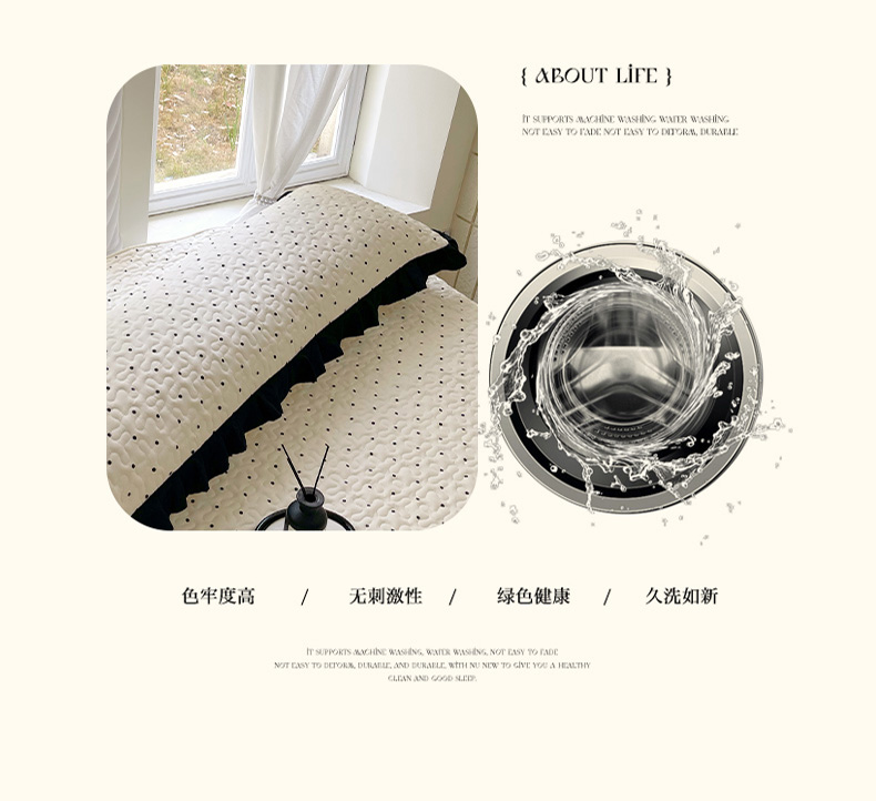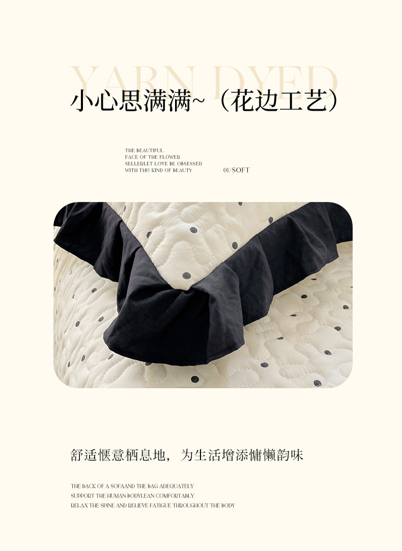 商品名称:雨彤家纺2025新款赫本风水洗棉花边夹棉枕套双人款 小波点