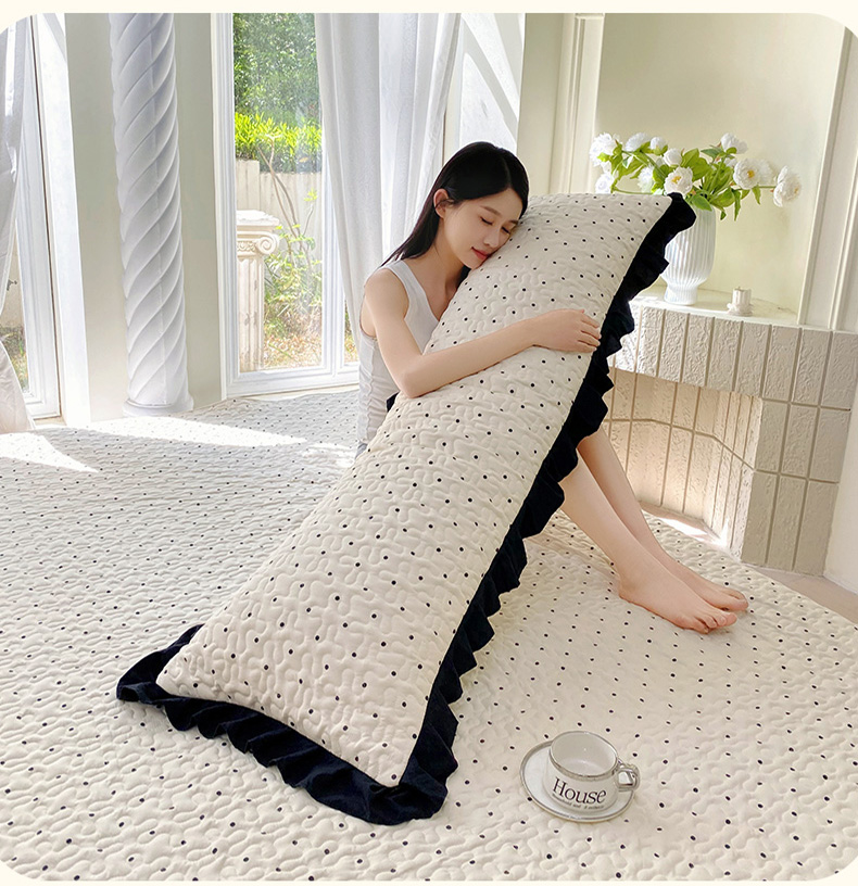 雨彤家纺2025新款赫本风水洗棉花边夹棉枕套双人款 小波点
