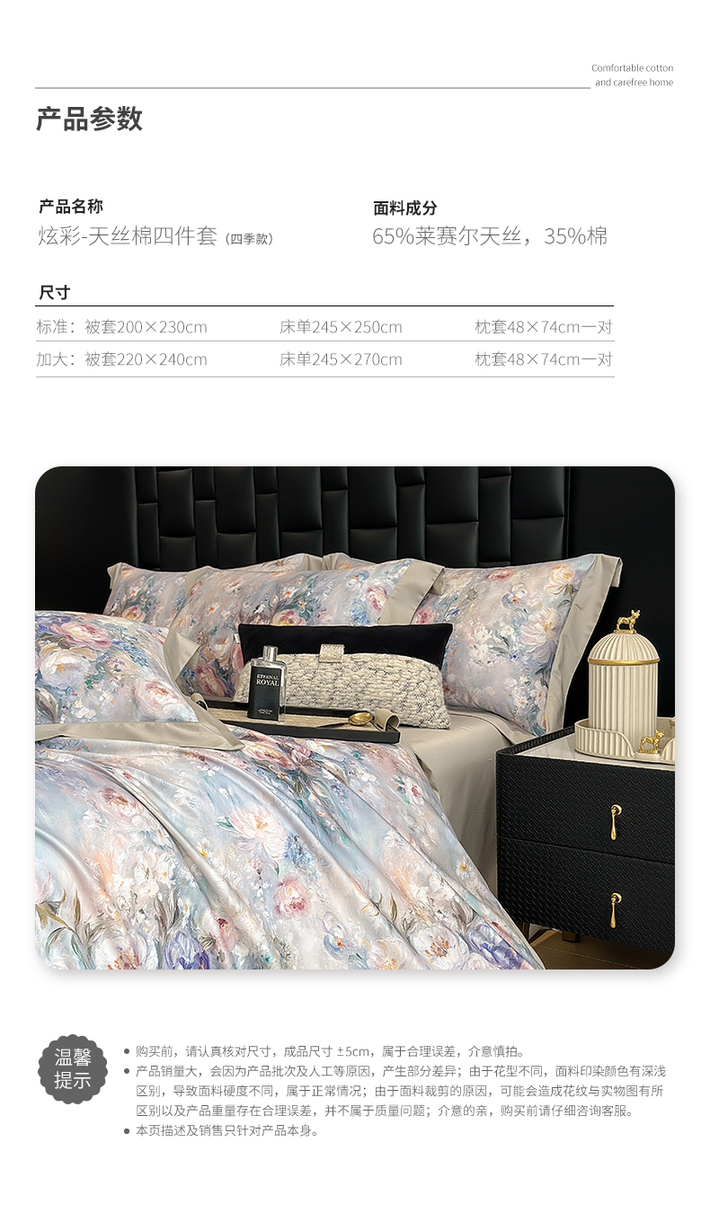 商品名称:元元家居(元元被业) 2026新款天丝棉四季款四件套-炫彩系列 爱丽丝