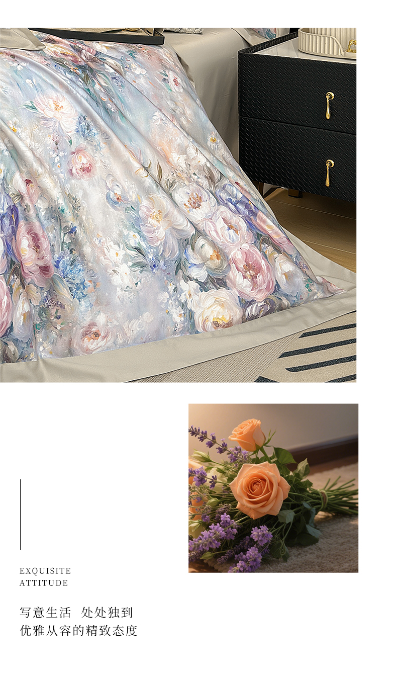 (总)元元家居(元元被业) 2025秋冬新款百支长绒棉纯棉贡缎工艺款四件套-魅影系列,魅影-布鲁灰,魅影-典雅白,魅影-香槟金,魅影-优雅粉
