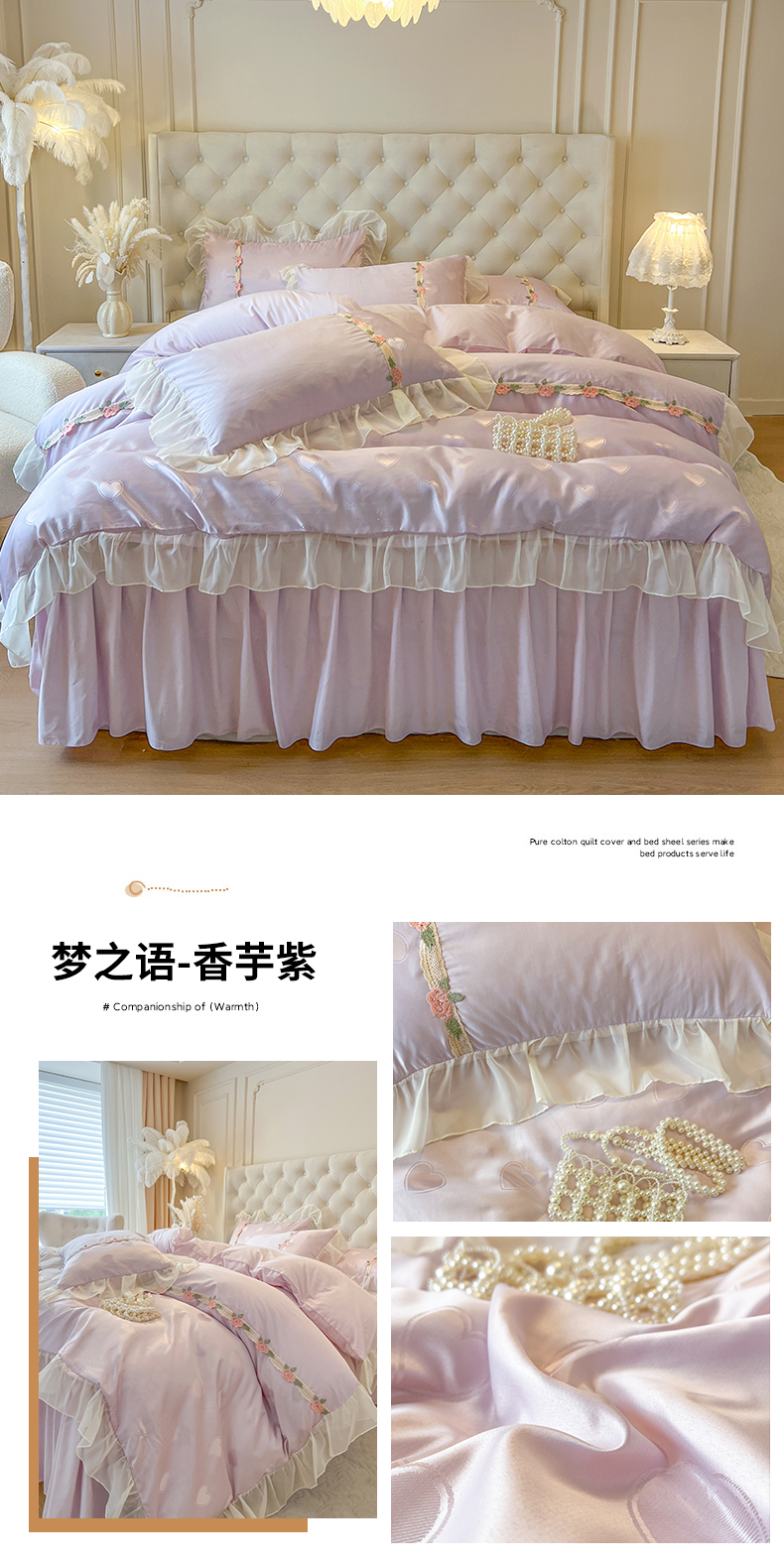 瑞宝 2025新款法式花边全棉贡缎提花床裙款四件套-梦之语(控价265起) 梦之语-香芋紫