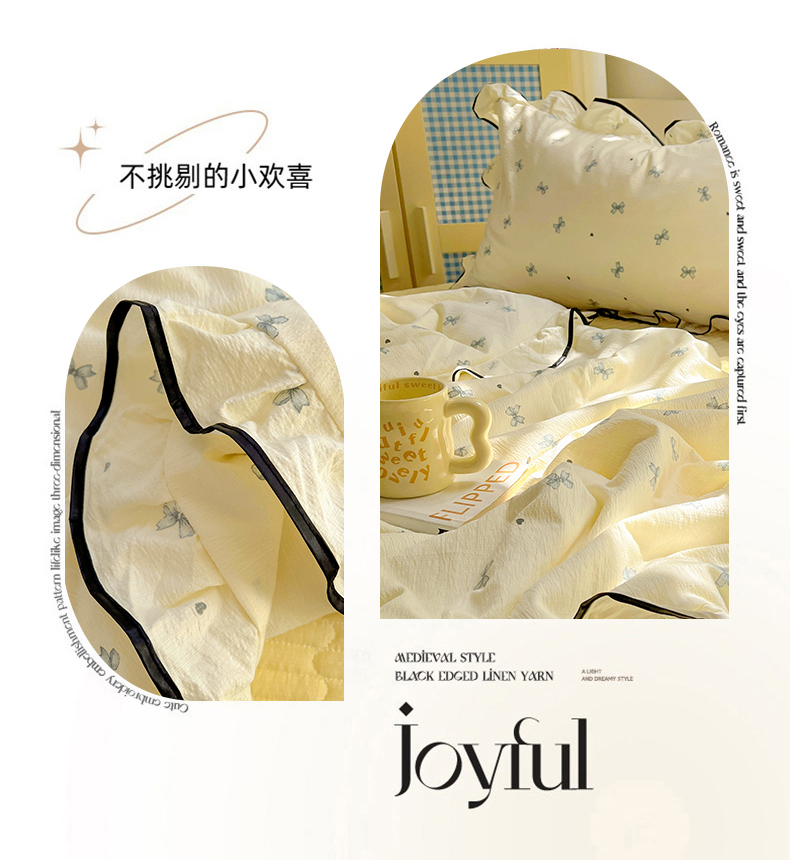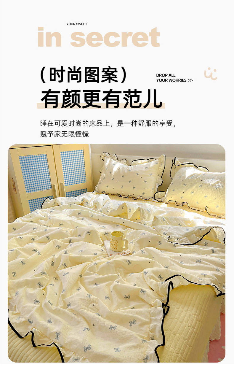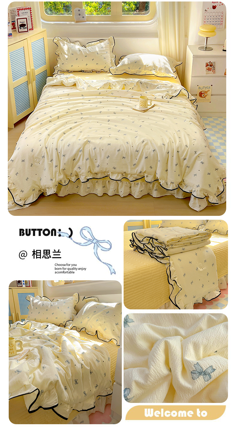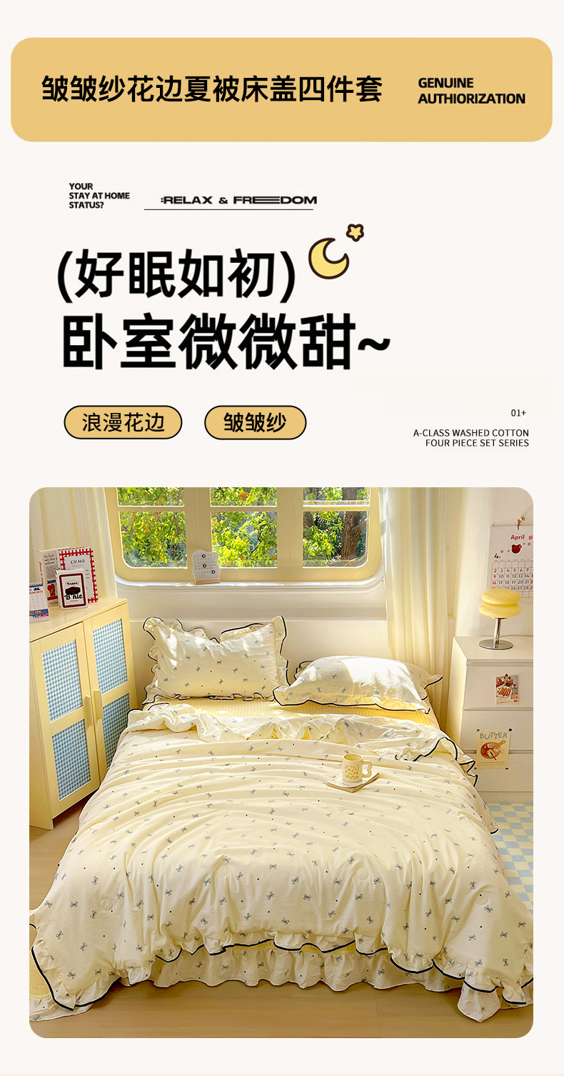 商品名称:美梦家纺 2025新款皱皱纱花边夏被床盖四件套 相思兰
