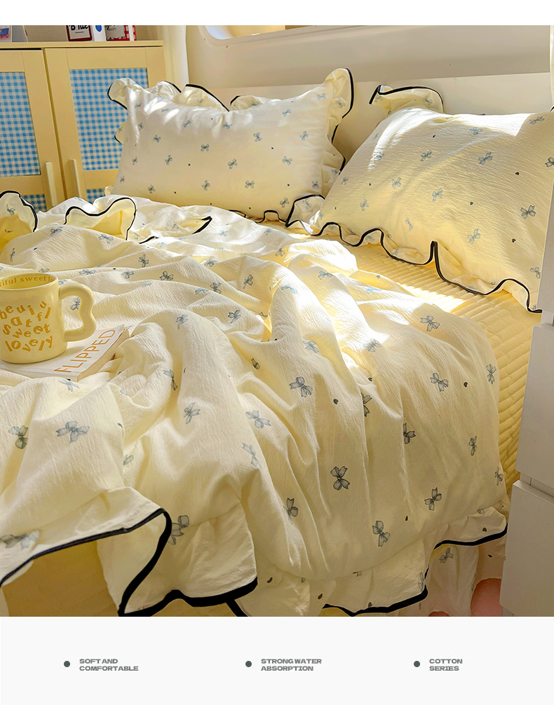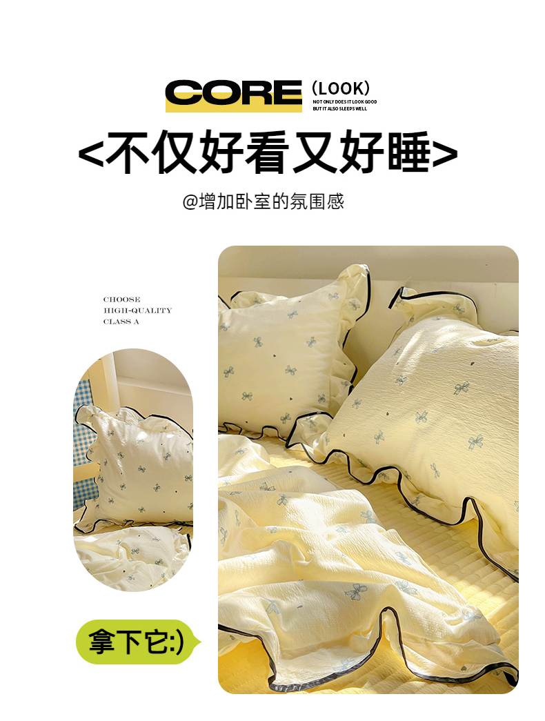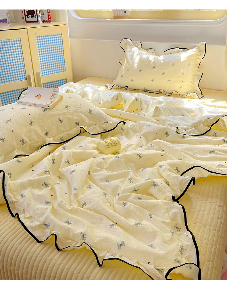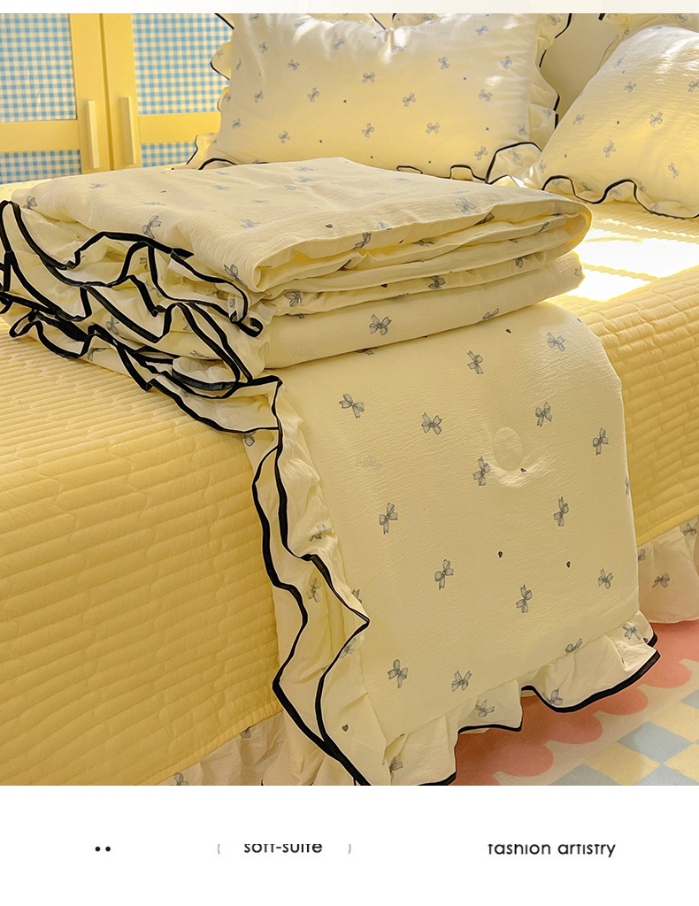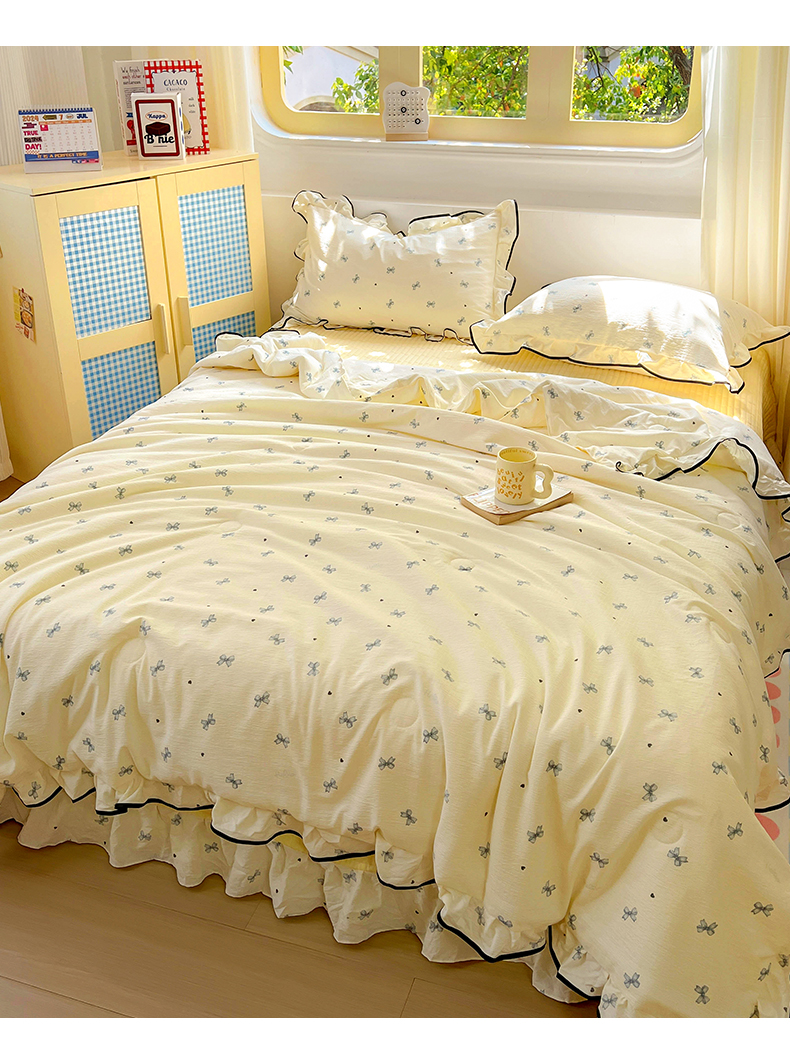 商品名称:美梦家纺 2025新款皱皱纱花边夏被床盖四件套 相思兰