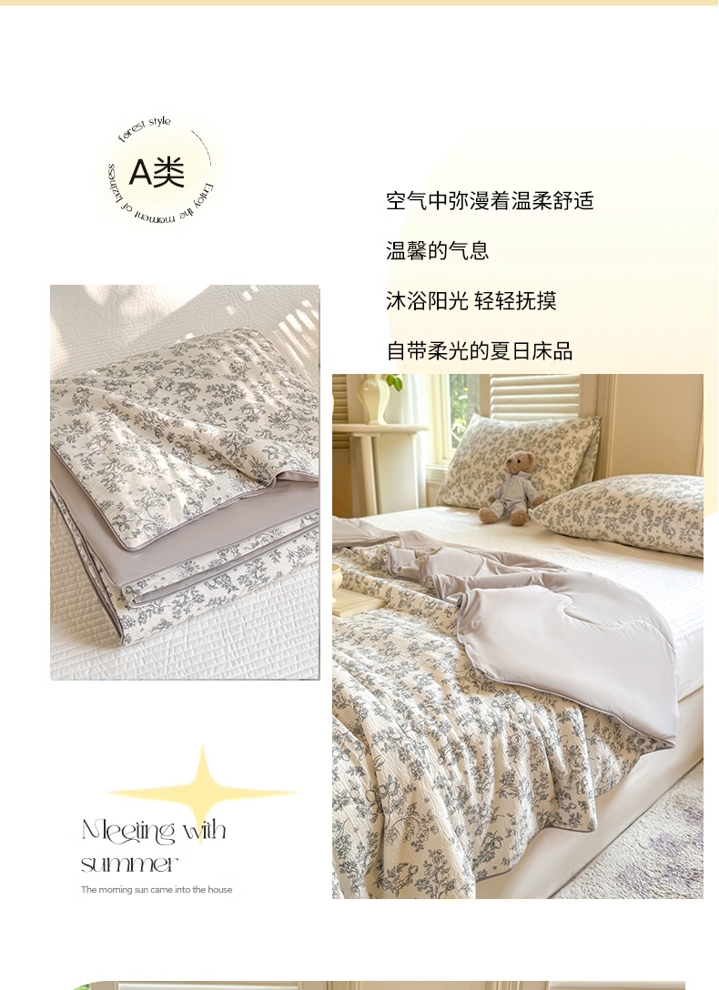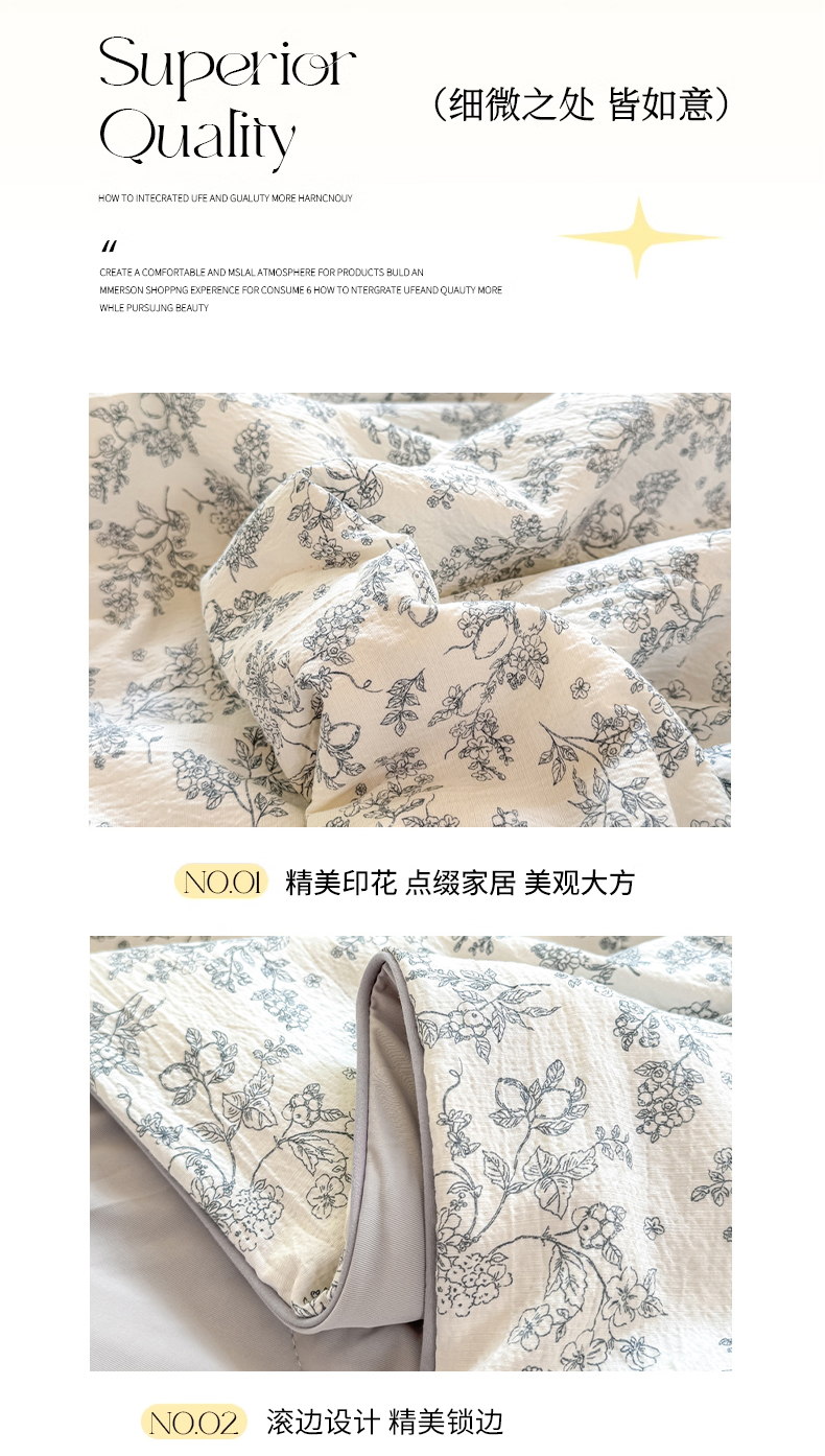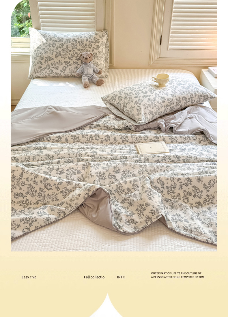 商品名称:丽美人家纺 2025新款爆款双拼皱皱纱冰皮被夏被夏凉被空调被 冰皮-花开漫漫