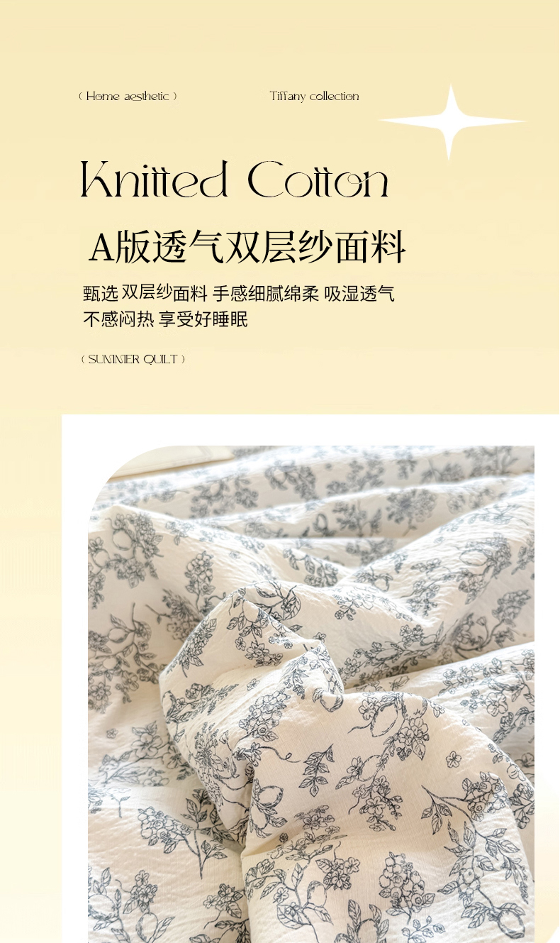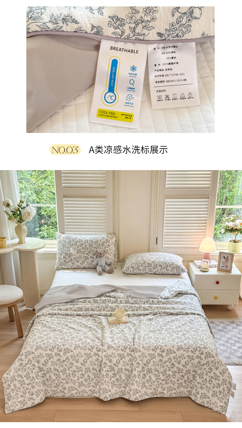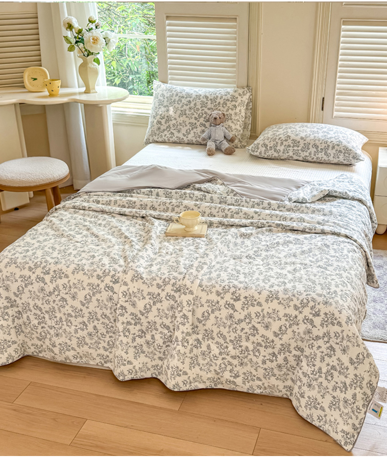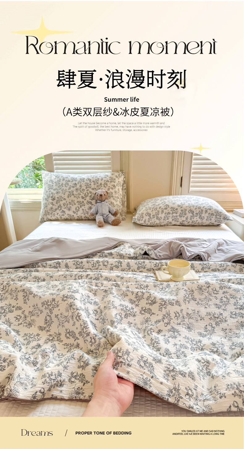 丽美人家纺 2025新款爆款双拼皱皱纱冰皮被夏被夏凉被空调被 冰皮-花开漫漫