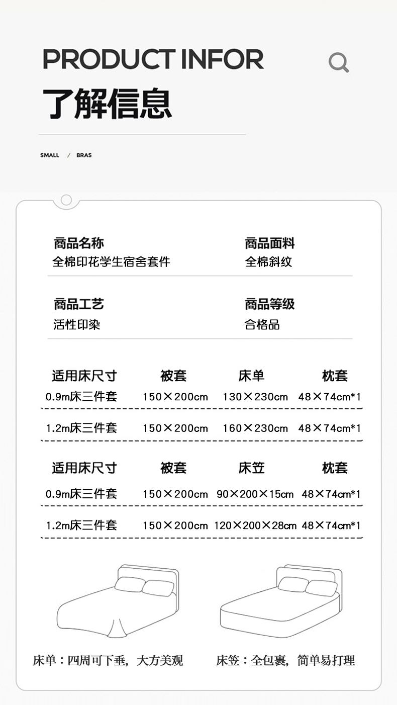 【床笠款】0.9x1.9三件套(被套150*200) | ¥65.00 |