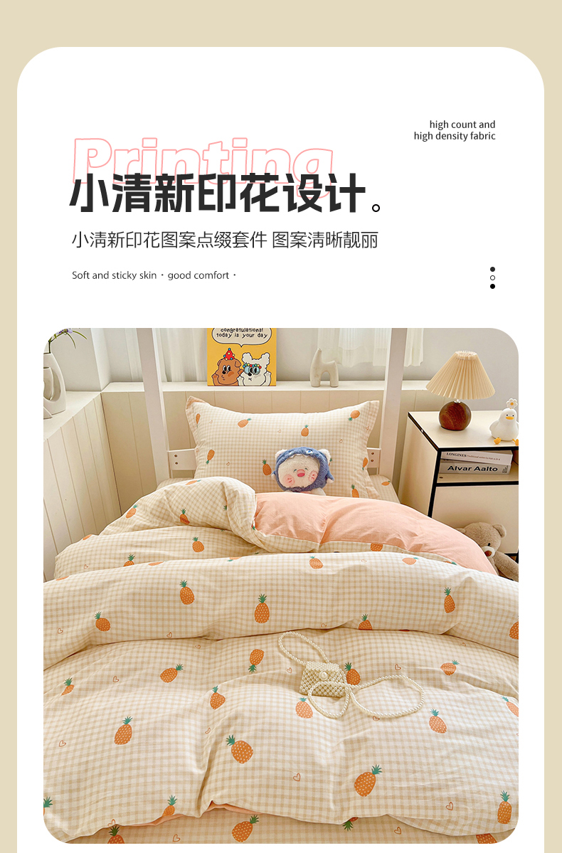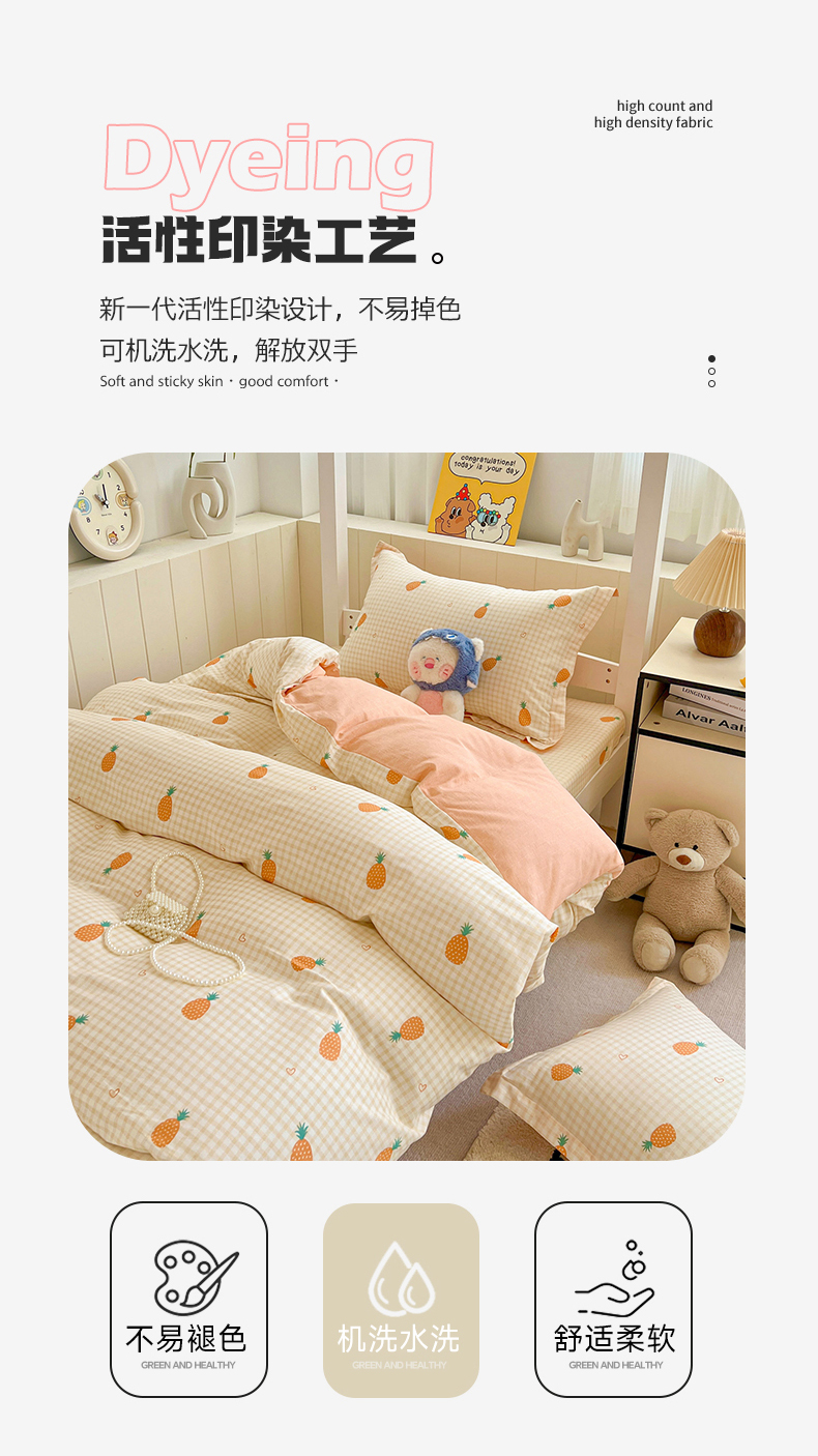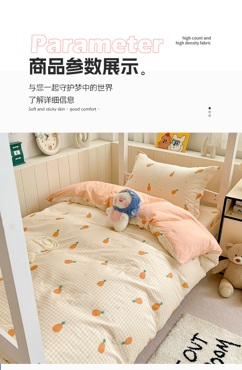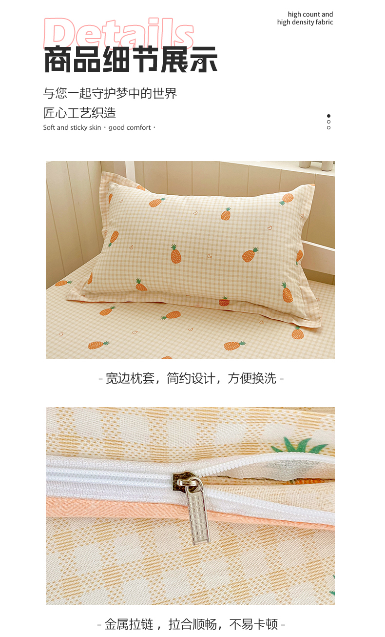 商品名称:春雨家居 2025新款学生季全棉三件套(预留缩水) 2.海岛菠萝