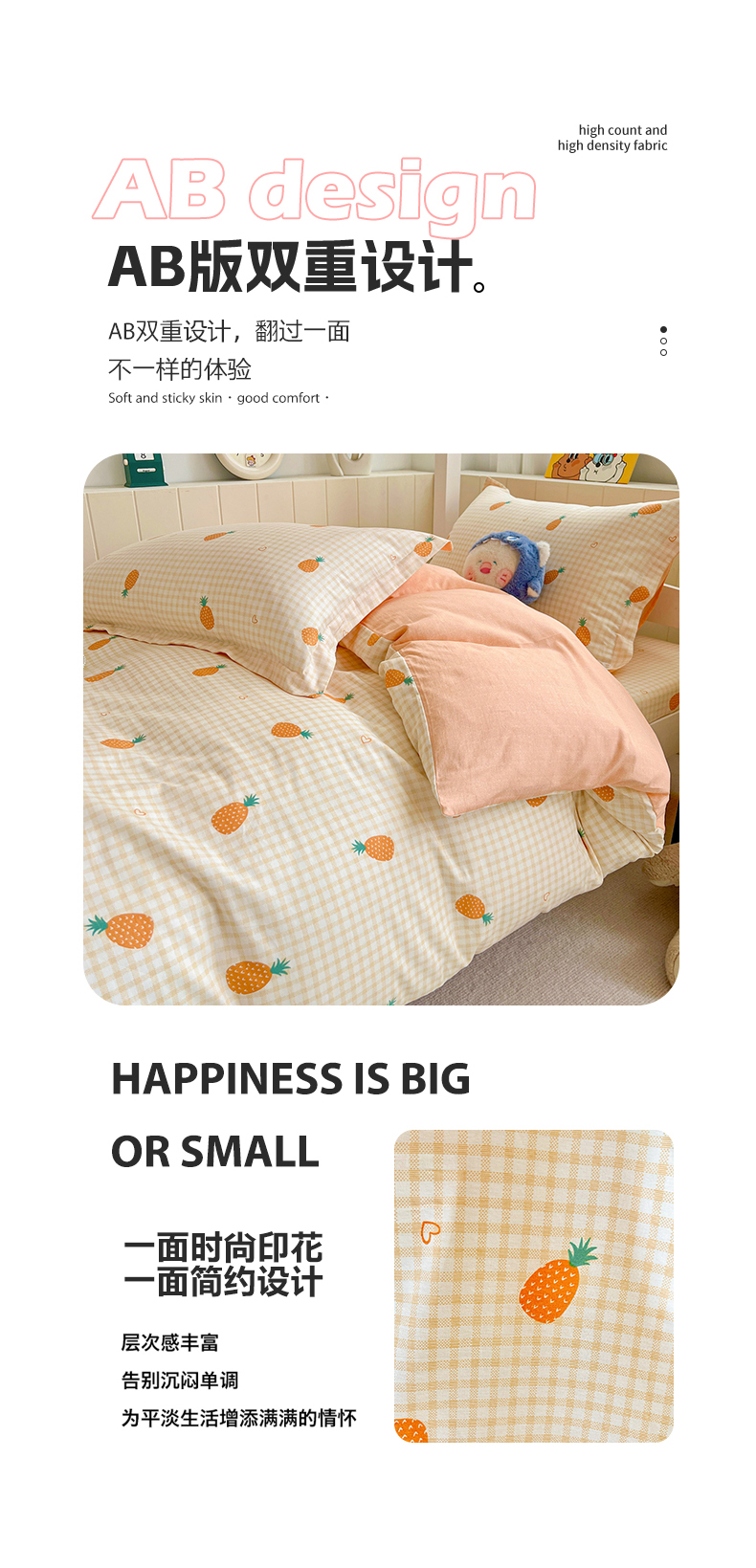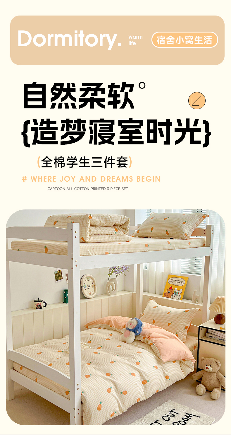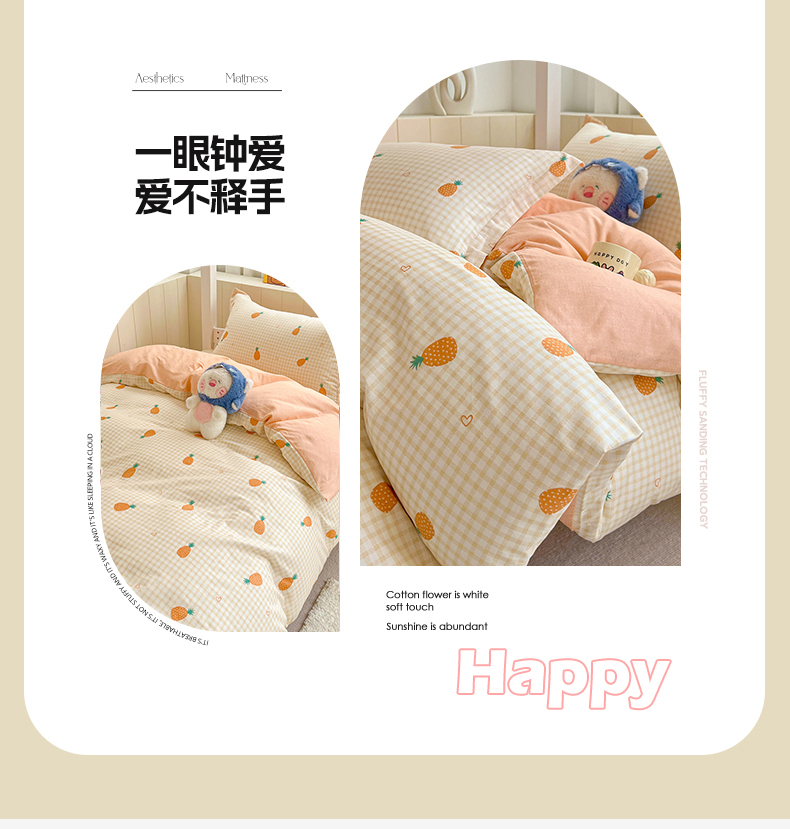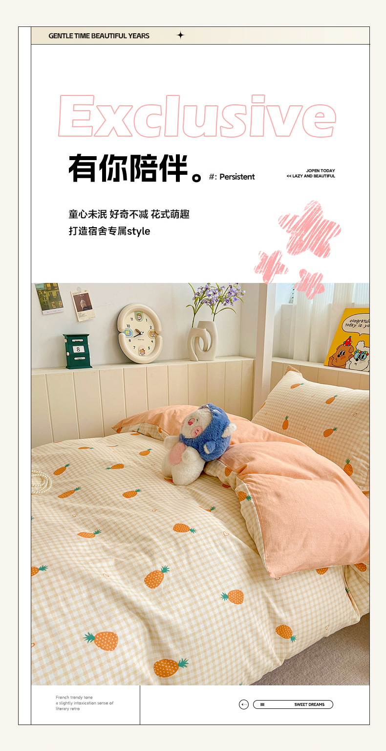 商品名称:春雨家居 2025新款学生季全棉三件套(预留缩水) 2.海岛菠萝