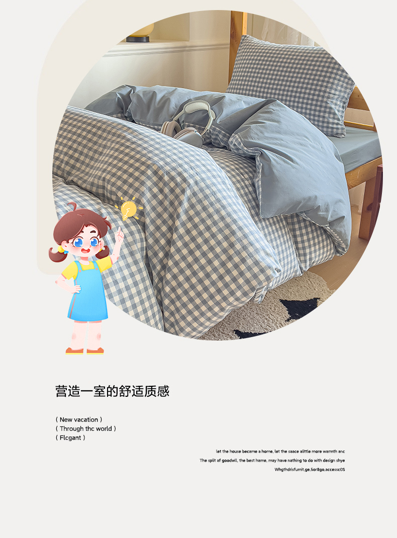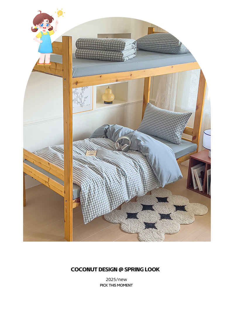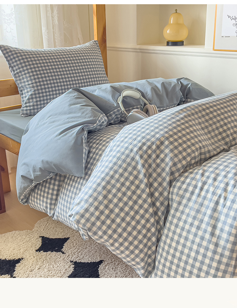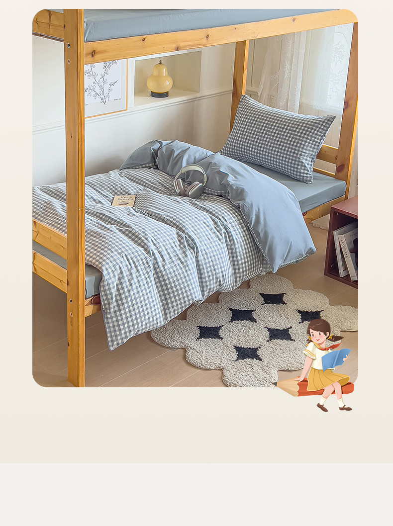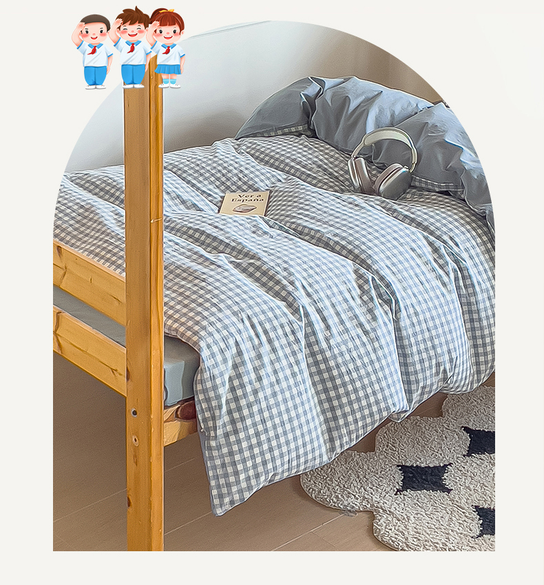 当前位置: 91家纺网 > 商品网购 > 床品套件 > 三件套 > 恬思语家纺 2025新款全棉纯棉水洗棉学生宿舍上下铺三件套四件套单被套单品 蓝小格