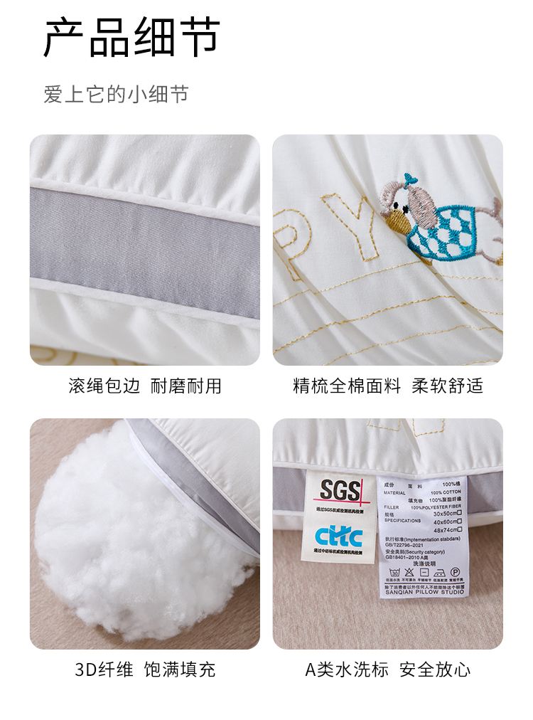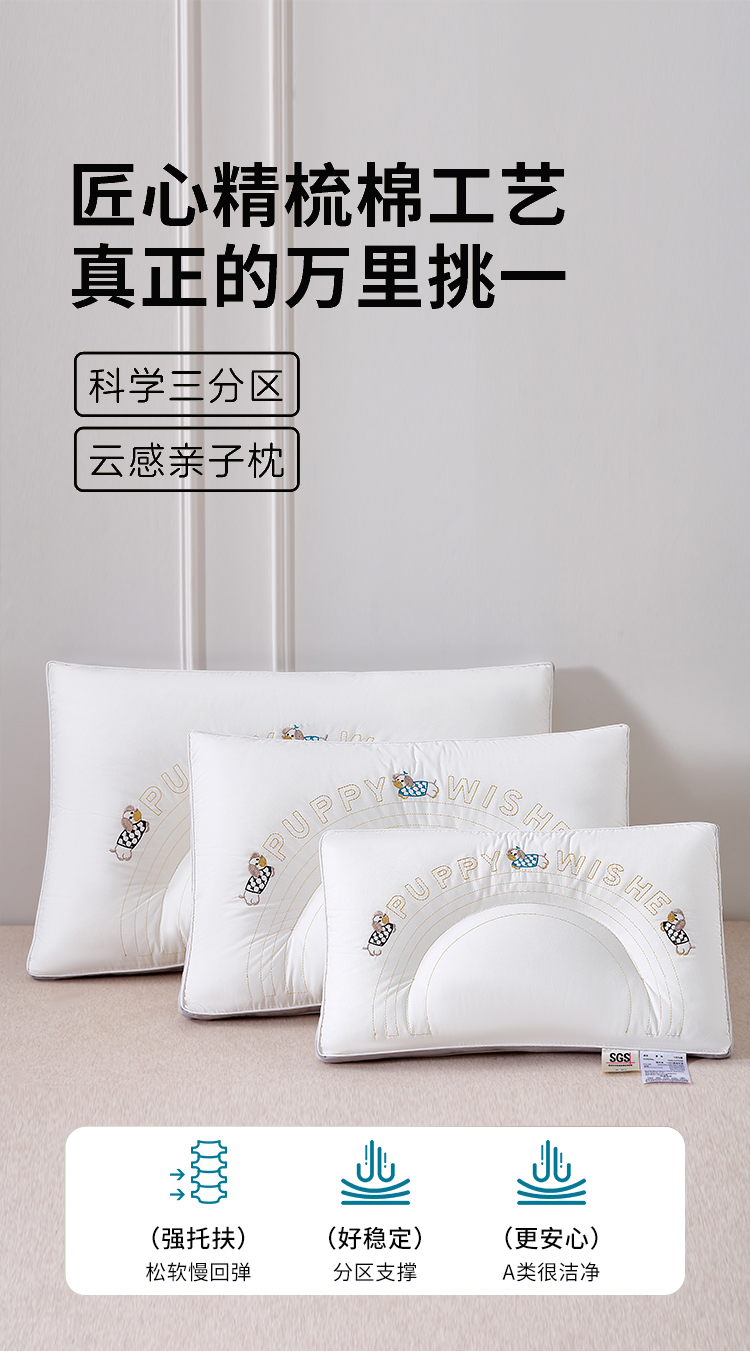 商品名称:(总)大熊枕芯 2025新款刺绣款顽皮狗亲子款枕芯 枕头