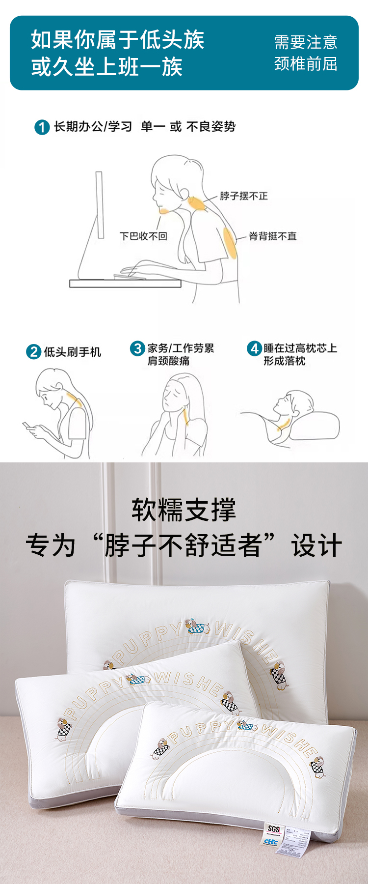 (总)大熊枕芯 2025新款A类云柔舒适value枕头枕芯,立体高枕,组合图仅供展示,单边中枕,决明子护颈枕,立体护颈枕