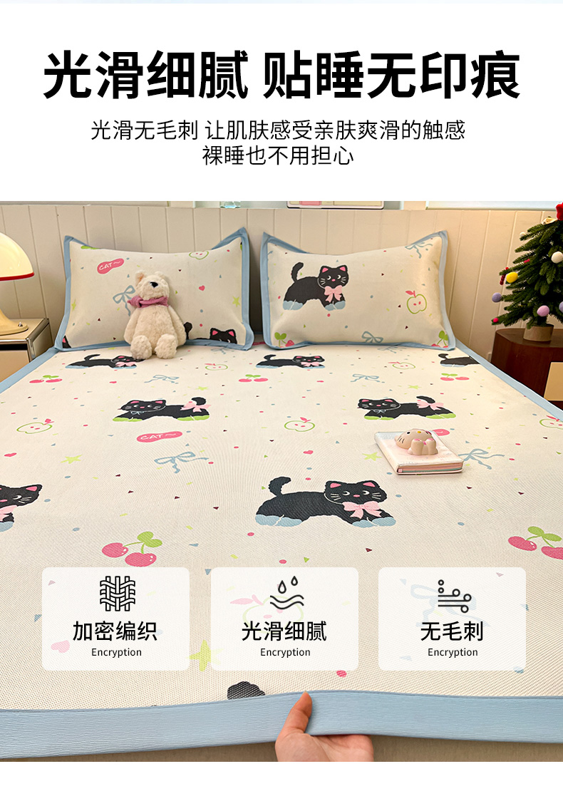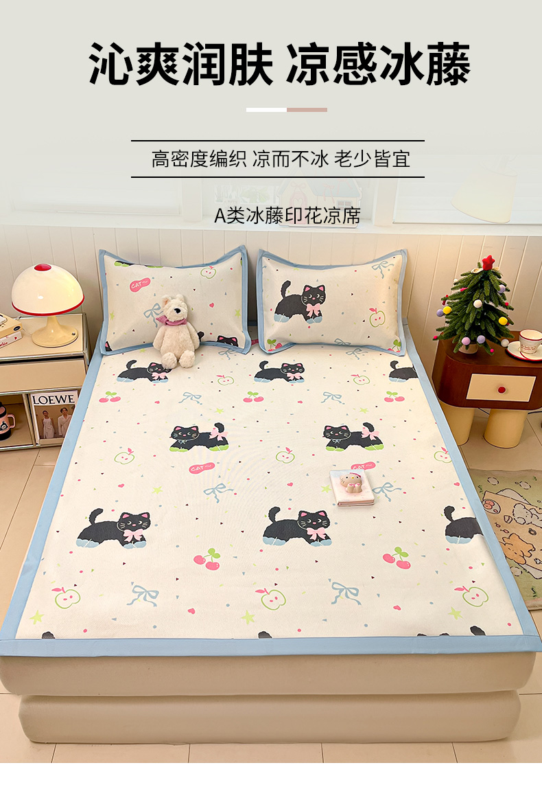 当前位置: 91家纺网 > 商品网购 > 床上用品 > 凉席 > 藤席 > 小叮当家纺仓储工厂店 2025新款A类小清新卡通高品质冰藤印花床笠款凉席席子-床笠款 冰藤席-黑猫日记