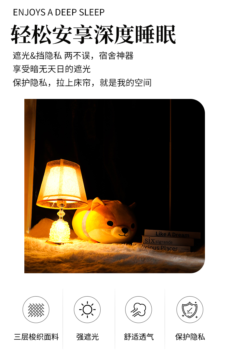 商品名称:(总)棉姐 床帘蚊帐2025新款 学生床帘蚊帐床帘 强遮光三层彩画上下铺宿舍床帘
