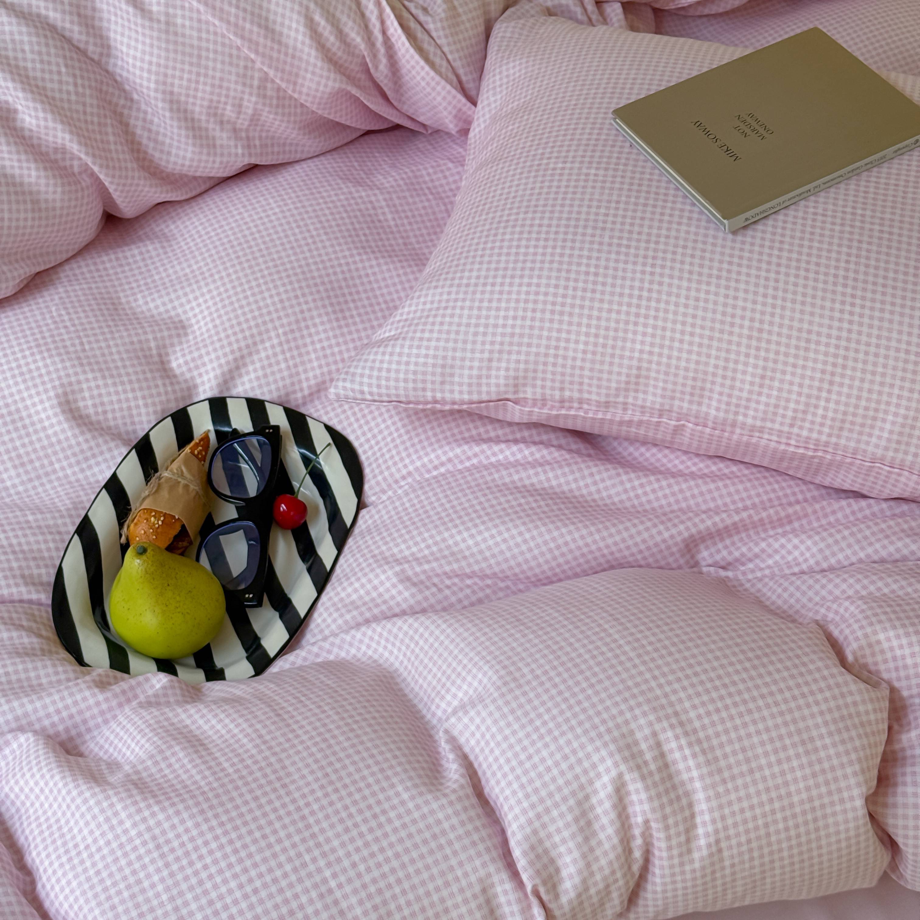 当前位置: 91家纺网 > 商品网购 > 床品套件 > 四件套 > 双层纱四件套 > 窝米 2025新品全棉纯棉双层纱简约条格四件套系列第一组 品小格-粉