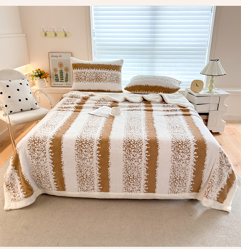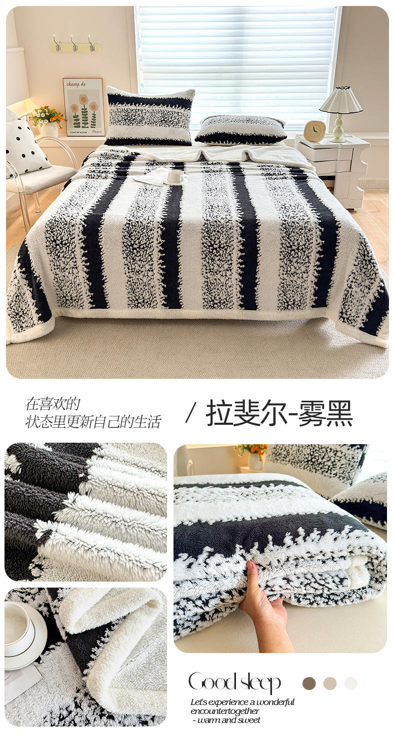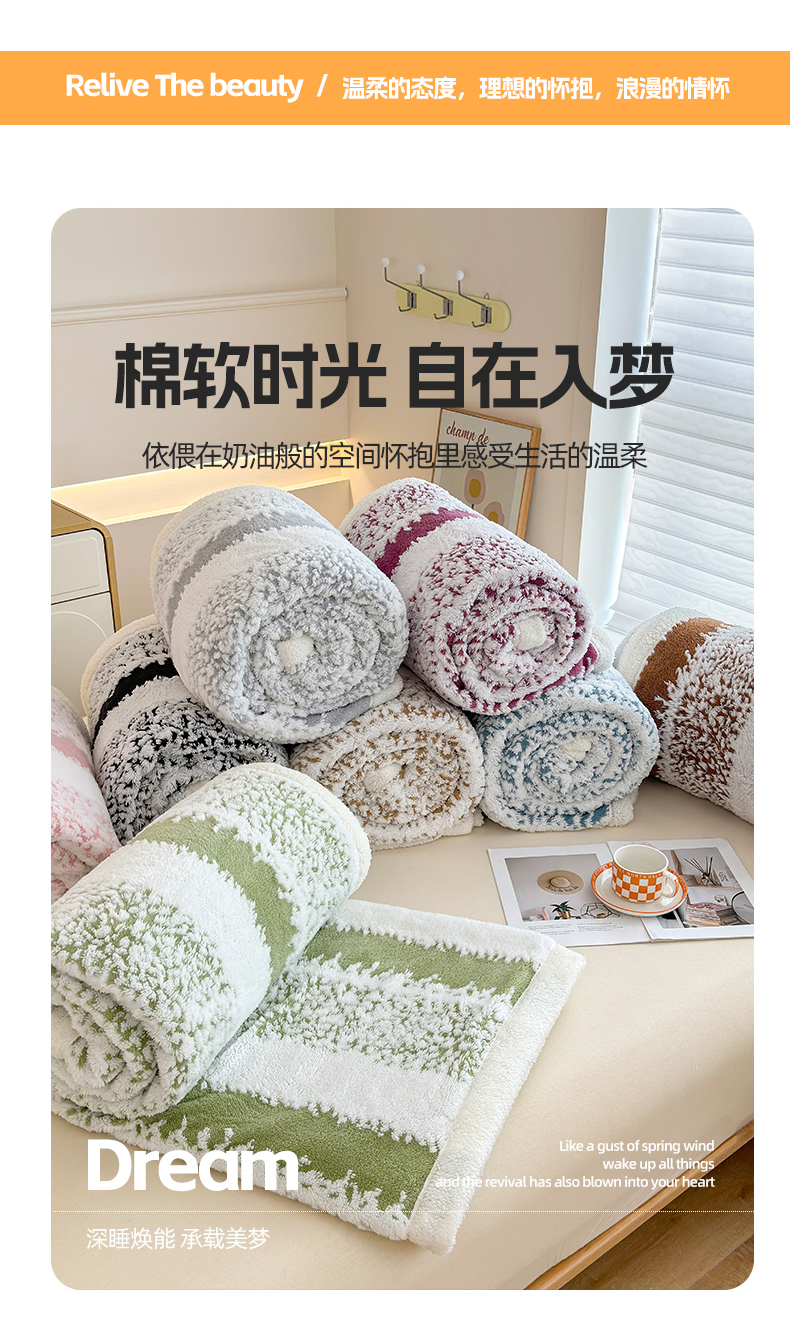 (总)春妮 2024新款兔毛绒宽抽条毛毯,豆沙色,卡其色,奶油白,暖阳橘,青灰色,深咖色,雾霾灰,曜石黑