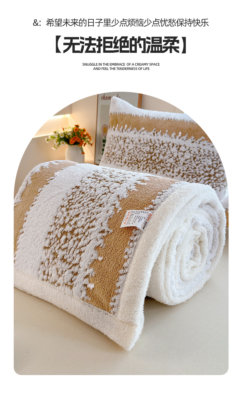 商品名称:春妮家纺 2025新款加厚羊羔绒阳离子双层盖毯舒棉绒毛毯 拉斐尔-茶棕