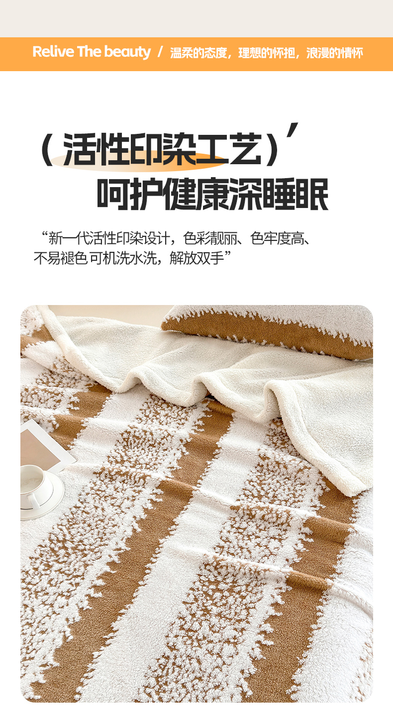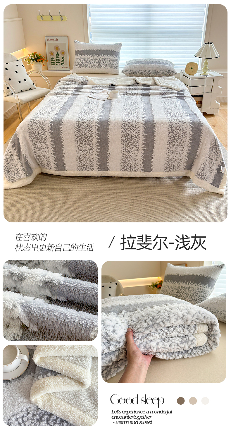 (总)春妮家纺 2024新款提花牛奶绒毛毯,豆沙,粉紫,极致灰,卡其,蓝灰,米白,品味蓝,条纹灰,驼色